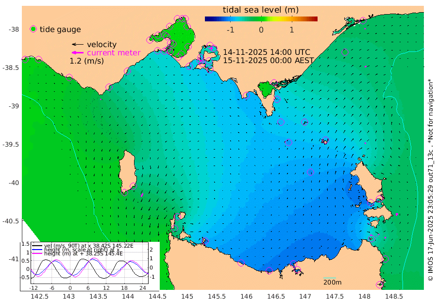 8cm/s 136T +9cm/s rms + 16cm/s 128T. CWTb1 63m 4cm/s 138T +8cm/s rms + 14cm/s 130T. C1A1 56m 16cm/s -89T +8cm/s rms + 12cm/s 12T. C1A3 27m 4cm/s -153T +0cm/s rms + 0cm/s 0T. CW1 32m 4cm/s -145T +11cm/s rms + 9cm/s 121T. CW2A1 44m 3cm/s 176T +7cm/s rms + 12cm/s 156T. CW2A2 44m 3cm/s -166T +7cm/s rms + 4cm/s 115T. CW3 33m 3cm/s -127T +9cm/s rms + 6cm/s 84T. CW4A1 30m 11cm/s 12T +5cm/s rms + 7cm/s 87T. CW4A2 36m 24cm/s 3T +9cm/s rms + 16cm/s 35T. CW6A1 37m 29cm/s 36T +6cm/s rms + 4cm/s 94T. CW6A2 31m 13cm/s 11T +4cm/s rms + 6cm/s 137T. BASS-CS91 47m 18cm/s 53T +11cm/s rms + 3cm/s -58T. BASS-CS91 70m 12cm/s 69T +10cm/s rms + 1cm/s 137T. BASS-CS91 47m 39cm/s -150T +10cm/s rms + 3cm/s 42T. BASS-CS91 53m 13cm/s -133T +8cm/s rms + 2cm/s 81T. BASS-CS91 64m 23cm/s -144T +6cm/s rms + 5cm/s 151T. BASS-UN91 115m 21cm/s 179T +4cm/s rms + 3cm/s 111T. Tas91 UNSW Mooring #1 65m 95m -29cm Lakes Entrance (Outer) -25cm Barracouta Platform -82cm Hogan Island -68cm Port Welshpool Pier -87cm Rabbit Island -89cm East Moncoeur Island -98cm Curtis Island -94cm Waratah Bay -76cm San Remo -70cm Elizabeth Island -71cm Bouchier Channel -60cm Tooradin -77cm Cowes Jetty -79cm Western Port (Stony Point) -60cm Western Port (Sandy Point) -80cm Flinders Jetty 0cm Mornington -1cm Sandringham 0cm Rosebud Jetty -1cm Hovell Pile -20cm South Channel -45cm Point Lonsdale -27cm Queenscliff -2cm West Channel Pile -57cm Barwon Heads -1cm St Leonards 0cm Point Richards (Corio Bay) -1cm Point Richards Channel 2cm Geelong -1cm Werribee -1cm Altona 1cm Wilson Spit 1cm Melbourne (Williamstown) 0cm St Kilda -60cm Lorne -44cm Apollo Bay -87cm Garden Cove -104cm Bass Pyramid -20cm Seal Bay -28cm King Island (Grassy) -46cm Stack Island -58cm Three Hummock Island -107cm Stanley -118cm Burnie -121cm Devonport -118cm Low Head -102cm Bell Bay -106cm Big River Cove -71cm Lady Barron Harbour -57cm Swan Island -28cm Eddystone Point -36cm St Helens -13cm Port Campbell -4cm Warrnambool -3cm Port Fairy