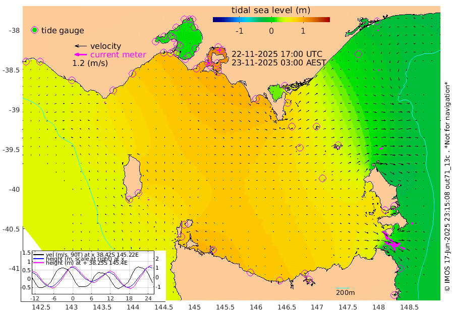 66cm/s 110T +9cm/s rms + 16cm/s 128T. CWTb1 63m 69cm/s 103T +8cm/s rms + 14cm/s 130T. C1A1 56m 116cm/s 104T +8cm/s rms + 12cm/s 12T. C1A3 27m 65cm/s 127T +0cm/s rms + 0cm/s 0T. CW1 32m 106cm/s 129T +11cm/s rms + 9cm/s 121T. CW2A1 44m 68cm/s 144T +7cm/s rms + 12cm/s 156T. CW2A2 44m 84cm/s 152T +7cm/s rms + 4cm/s 115T. CW3 33m 116cm/s 110T +9cm/s rms + 6cm/s 84T. CW4A1 30m 52cm/s 116T +5cm/s rms + 7cm/s 87T. CW4A2 36m 14cm/s 137T +9cm/s rms + 16cm/s 35T. CW6A1 37m 16cm/s 46T +6cm/s rms + 4cm/s 94T. CW6A2 31m 35cm/s 70T +4cm/s rms + 6cm/s 137T. BASS-CS91 47m 10cm/s -168T +11cm/s rms + 3cm/s -58T. BASS-CS91 70m 14cm/s -119T +10cm/s rms + 1cm/s 137T. BASS-CS91 47m 10cm/s -7T +10cm/s rms + 3cm/s 42T. BASS-CS91 53m 6cm/s -80T +8cm/s rms + 2cm/s 81T. BASS-CS91 64m 10cm/s 71T +6cm/s rms + 5cm/s 151T. BASS-UN91 115m 7cm/s 9T +4cm/s rms + 3cm/s 111T. Tas91 UNSW Mooring #1 65m 95m -11cm Lakes Entrance (Outer) 0cm Barracouta Platform 49cm Hogan Island 68cm Port Welshpool Pier 69cm Rabbit Island 66cm East Moncoeur Island 62cm Curtis Island 90cm Waratah Bay 111cm San Remo 103cm Elizabeth Island 119cm Bouchier Channel 112cm Tooradin 106cm Cowes Jetty 107cm Western Port (Stony Point) 114cm Western Port (Sandy Point) 88cm Flinders Jetty 10cm Mornington 12cm Sandringham 10cm Rosebud Jetty 12cm Hovell Pile 27cm South Channel 53cm Point Lonsdale 32cm Queenscliff 13cm West Channel Pile 66cm Barwon Heads 13cm St Leonards 15cm Point Richards (Corio Bay) 14cm Point Richards Channel 14cm Geelong 11cm Werribee 14cm Altona 14cm Wilson Spit 13cm Melbourne (Williamstown) 14cm St Kilda 74cm Lorne 66cm Apollo Bay 35cm Garden Cove 58cm Bass Pyramid 56cm Seal Bay 64cm King Island (Grassy) 83cm Stack Island 72cm Three Hummock Island 86cm Stanley 78cm Burnie 76cm Devonport 74cm Low Head 88cm Bell Bay 56cm Big River Cove 21cm Lady Barron Harbour -15cm Swan Island -30cm Eddystone Point -12cm St Helens 49cm Port Campbell 50cm Warrnambool 48cm Port Fairy