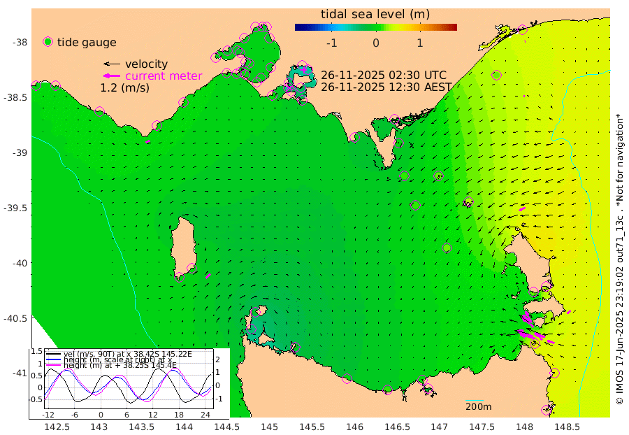 77cm/s -67T +9cm/s rms + 16cm/s 128T. CWTb1 63m 74cm/s -74T +8cm/s rms + 14cm/s 130T. C1A1 56m 114cm/s -74T +8cm/s rms + 12cm/s 12T. C1A3 27m 66cm/s -51T +0cm/s rms + 0cm/s 0T. CW1 32m 110cm/s -49T +11cm/s rms + 9cm/s 121T. CW2A1 44m 68cm/s -38T +7cm/s rms + 12cm/s 156T. CW2A2 44m 93cm/s -27T +7cm/s rms + 4cm/s 115T. CW3 33m 119cm/s -69T +9cm/s rms + 6cm/s 84T. CW4A1 30m 53cm/s -69T +5cm/s rms + 7cm/s 87T. CW4A2 36m 16cm/s -139T +9cm/s rms + 16cm/s 35T. CW6A1 37m 30cm/s -133T +6cm/s rms + 4cm/s 94T. CW6A2 31m 52cm/s -116T +4cm/s rms + 6cm/s 137T. BASS-CS91 47m 9cm/s -68T +11cm/s rms + 3cm/s -58T. BASS-CS91 70m 5cm/s 55T +10cm/s rms + 1cm/s 137T. BASS-CS91 47m 44cm/s 45T +10cm/s rms + 3cm/s 42T. BASS-CS91 53m 29cm/s 66T +8cm/s rms + 2cm/s 81T. BASS-CS91 64m 18cm/s 11T +6cm/s rms + 5cm/s 151T. BASS-UN91 115m 13cm/s -5T +4cm/s rms + 3cm/s 111T. Tas91 UNSW Mooring #1 65m 95m 35cm Lakes Entrance (Outer) 17cm Barracouta Platform 20cm Hogan Island -22cm Port Welshpool Pier 2cm Rabbit Island 13cm East Moncoeur Island 13cm Curtis Island 0cm Waratah Bay -27cm San Remo -32cm Elizabeth Island -56cm Bouchier Channel -65cm Tooradin -23cm Cowes Jetty -30cm Western Port (Stony Point) -56cm Western Port (Sandy Point) 7cm Flinders Jetty -7cm Mornington -7cm Sandringham -3cm Rosebud Jetty -5cm Hovell Pile 2cm South Channel 7cm Point Lonsdale 6cm Queenscliff -5cm West Channel Pile 3cm Barwon Heads -8cm St Leonards -9cm Point Richards (Corio Bay) -10cm Point Richards Channel -11cm Geelong -7cm Werribee -9cm Altona -12cm Wilson Spit -8cm Melbourne (Williamstown) -8cm St Kilda 11cm Lorne 11cm Apollo Bay 33cm Garden Cove 18cm Bass Pyramid -1cm Seal Bay 1cm King Island (Grassy) -43cm Stack Island -14cm Three Hummock Island -9cm Stanley 9cm Burnie 14cm Devonport 11cm Low Head -20cm Bell Bay 17cm Big River Cove 29cm Lady Barron Harbour 57cm Swan Island 55cm Eddystone Point 44cm St Helens 7cm Port Campbell 1cm Warrnambool -1cm Port Fairy