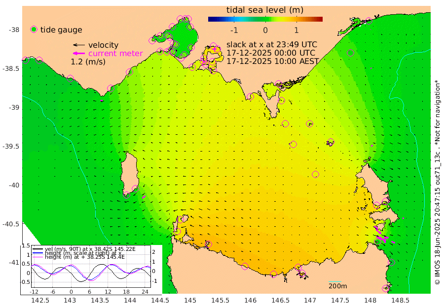 31cm/s 106T +9cm/s rms + 16cm/s 128T. CWTb1 63m 36cm/s 100T +8cm/s rms + 14cm/s 130T. C1A1 56m 82cm/s 105T +8cm/s rms + 12cm/s 12T. C1A3 27m 45cm/s 129T +0cm/s rms + 0cm/s 0T. CW1 32m 56cm/s 129T +11cm/s rms + 9cm/s 121T. CW2A1 44m 48cm/s 140T +7cm/s rms + 12cm/s 156T. CW2A2 44m 44cm/s 152T +7cm/s rms + 4cm/s 115T. CW3 33m 63cm/s 109T +9cm/s rms + 6cm/s 84T. CW4A1 30m 39cm/s 113T +5cm/s rms + 7cm/s 87T. CW4A2 36m 8cm/s 52T +9cm/s rms + 16cm/s 35T. CW6A1 37m 12cm/s 68T +6cm/s rms + 4cm/s 94T. CW6A2 31m 18cm/s 78T +4cm/s rms + 6cm/s 137T. BASS-CS91 47m 7cm/s 121T +11cm/s rms + 3cm/s -58T. BASS-CS91 70m 3cm/s 90T +10cm/s rms + 1cm/s 137T. BASS-CS91 47m 38cm/s -127T +10cm/s rms + 3cm/s 42T. BASS-CS91 53m 25cm/s -109T +8cm/s rms + 2cm/s 81T. BASS-CS91 64m 17cm/s -20T +6cm/s rms + 5cm/s 151T. BASS-UN91 115m 11cm/s -76T +4cm/s rms + 3cm/s 111T. Tas91 UNSW Mooring #1 65m 95m 6cm Lakes Entrance (Outer) 10cm Barracouta Platform 39cm Hogan Island 69cm Port Welshpool Pier 46cm Rabbit Island 44cm East Moncoeur Island 52cm Curtis Island 56cm Waratah Bay 57cm San Remo 58cm Elizabeth Island 68cm Bouchier Channel 64cm Tooradin 49cm Cowes Jetty 55cm Western Port (Stony Point) 66cm Western Port (Sandy Point) 35cm Flinders Jetty 17cm Mornington 19cm Sandringham 17cm Rosebud Jetty 17cm Hovell Pile 17cm South Channel 20cm Point Lonsdale 18cm Queenscliff 17cm West Channel Pile 20cm Barwon Heads 17cm St Leonards 19cm Point Richards (Corio Bay) 19cm Point Richards Channel 19cm Geelong 16cm Werribee 18cm Altona 20cm Wilson Spit 18cm Melbourne (Williamstown) 18cm St Kilda 17cm Lorne 4cm Apollo Bay 38cm Garden Cove 53cm Bass Pyramid -7cm Seal Bay 3cm King Island (Grassy) 48cm Stack Island 55cm Three Hummock Island 84cm Stanley 78cm Burnie 77cm Devonport 78cm Low Head 91cm Bell Bay 60cm Big River Cove 32cm Lady Barron Harbour -1cm Swan Island -13cm Eddystone Point 24cm St Helens -9cm Port Campbell -10cm Warrnambool -10cm Port Fairy