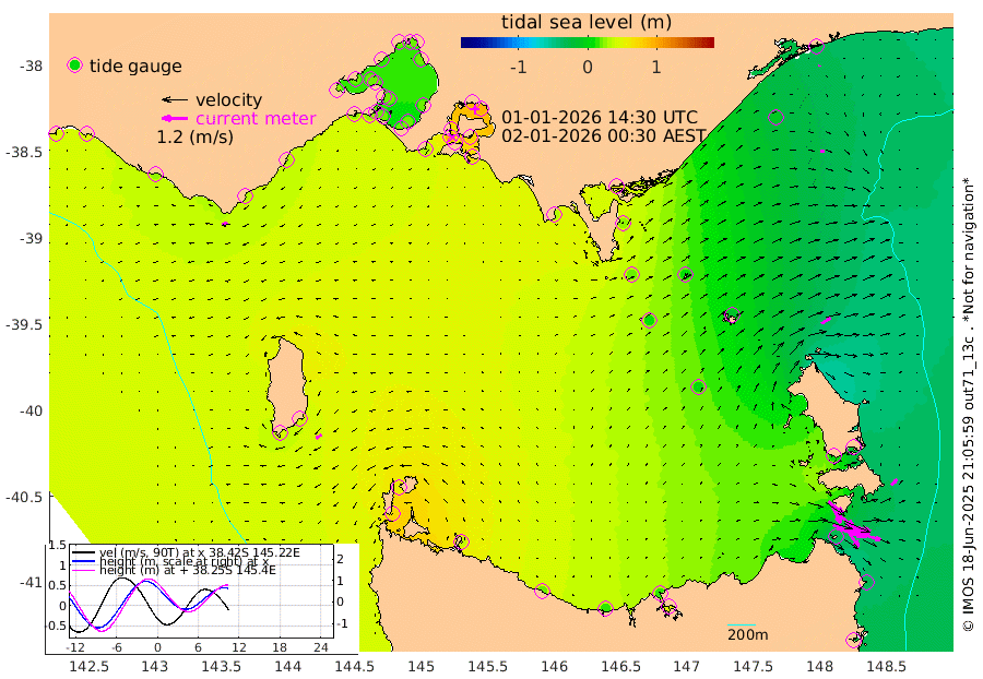 95cm/s 113T +9cm/s rms + 16cm/s 128T. CWTb1 63m 87cm/s 106T +8cm/s rms + 14cm/s 130T. C1A1 56m 144cm/s 104T +8cm/s rms + 12cm/s 12T. C1A3 27m 87cm/s 127T +0cm/s rms + 0cm/s 0T. CW1 32m 127cm/s 130T +11cm/s rms + 9cm/s 121T. CW2A1 44m 90cm/s 144T +7cm/s rms + 12cm/s 156T. CW2A2 44m 100cm/s 152T +7cm/s rms + 4cm/s 115T. CW3 33m 136cm/s 109T +9cm/s rms + 6cm/s 84T. CW4A1 30m 67cm/s 105T +5cm/s rms + 7cm/s 87T. CW4A2 36m 24cm/s 50T +9cm/s rms + 16cm/s 35T. CW6A1 37m 35cm/s 48T +6cm/s rms + 4cm/s 94T. CW6A2 31m 50cm/s 58T +4cm/s rms + 6cm/s 137T. BASS-CS91 47m 16cm/s 100T +11cm/s rms + 3cm/s -58T. BASS-CS91 70m 5cm/s -162T +10cm/s rms + 1cm/s 137T. BASS-CS91 47m 31cm/s -123T +10cm/s rms + 3cm/s 42T. BASS-CS91 53m 28cm/s -110T +8cm/s rms + 2cm/s 81T. BASS-CS91 64m 5cm/s 13T +6cm/s rms + 5cm/s 151T. BASS-UN91 115m 7cm/s -90T +4cm/s rms + 3cm/s 111T. Tas91 UNSW Mooring #1 65m 95m -20cm Lakes Entrance (Outer) -10cm Barracouta Platform 7cm Hogan Island 57cm Port Welshpool Pier 26cm Rabbit Island 20cm East Moncoeur Island 8cm Curtis Island 33cm Waratah Bay 70cm San Remo 74cm Elizabeth Island 91cm Bouchier Channel 92cm Tooradin 61cm Cowes Jetty 64cm Western Port (Stony Point) 95cm Western Port (Sandy Point) 34cm Flinders Jetty 17cm Mornington 20cm Sandringham 17cm Rosebud Jetty 18cm Hovell Pile 18cm South Channel 23cm Point Lonsdale 17cm Queenscliff 19cm West Channel Pile 24cm Barwon Heads 18cm St Leonards 22cm Point Richards (Corio Bay) 21cm Point Richards Channel 23cm Geelong 14cm Werribee 21cm Altona 22cm Wilson Spit 20cm Melbourne (Williamstown) 21cm St Kilda 31cm Lorne 32cm Apollo Bay -12cm Garden Cove 2cm Bass Pyramid 44cm Seal Bay 44cm King Island (Grassy) 71cm Stack Island 54cm Three Hummock Island 37cm Stanley 19cm Burnie 13cm Devonport 16cm Low Head 48cm Bell Bay 4cm Big River Cove -14cm Lady Barron Harbour -31cm Swan Island -29cm Eddystone Point -22cm St Helens 25cm Port Campbell 45cm Warrnambool 44cm Port Fairy