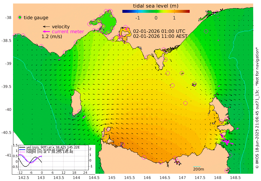 53cm/s 108T +9cm/s rms + 16cm/s 128T. CWTb1 63m 58cm/s 102T +8cm/s rms + 14cm/s 130T. C1A1 56m 128cm/s 105T +8cm/s rms + 12cm/s 12T. C1A3 27m 71cm/s 128T +0cm/s rms + 0cm/s 0T. CW1 32m 90cm/s 130T +11cm/s rms + 9cm/s 121T. CW2A1 44m 76cm/s 141T +7cm/s rms + 12cm/s 156T. CW2A2 44m 69cm/s 153T +7cm/s rms + 4cm/s 115T. CW3 33m 98cm/s 108T +9cm/s rms + 6cm/s 84T. CW4A1 30m 62cm/s 111T +5cm/s rms + 7cm/s 87T. CW4A2 36m 16cm/s 23T +9cm/s rms + 16cm/s 35T. CW6A1 37m 36cm/s 54T +6cm/s rms + 4cm/s 94T. CW6A2 31m 28cm/s 77T +4cm/s rms + 6cm/s 137T. BASS-CS91 47m 11cm/s 103T +11cm/s rms + 3cm/s -58T. BASS-CS91 70m 7cm/s 76T +10cm/s rms + 1cm/s 137T. BASS-CS91 47m 63cm/s -131T +10cm/s rms + 3cm/s 42T. BASS-CS91 53m 37cm/s -109T +8cm/s rms + 2cm/s 81T. BASS-CS91 64m 23cm/s -39T +6cm/s rms + 5cm/s 151T. BASS-UN91 115m 15cm/s -108T +4cm/s rms + 3cm/s 111T. Tas91 UNSW Mooring #1 65m 95m -4cm Lakes Entrance (Outer) -1cm Barracouta Platform 40cm Hogan Island 88cm Port Welshpool Pier 47cm Rabbit Island 50cm East Moncoeur Island 50cm Curtis Island 59cm Waratah Bay 70cm San Remo 74cm Elizabeth Island 85cm Bouchier Channel 81cm Tooradin 57cm Cowes Jetty 63cm Western Port (Stony Point) 88cm Western Port (Sandy Point) 32cm Flinders Jetty 22cm Mornington 23cm Sandringham 22cm Rosebud Jetty 22cm Hovell Pile 19cm South Channel 17cm Point Lonsdale 18cm Queenscliff 23cm West Channel Pile 17cm Barwon Heads 21cm St Leonards 25cm Point Richards (Corio Bay) 24cm Point Richards Channel 25cm Geelong 20cm Werribee 23cm Altona 25cm Wilson Spit 24cm Melbourne (Williamstown) 24cm St Kilda 7cm Lorne -6cm Apollo Bay 33cm Garden Cove 59cm Bass Pyramid -16cm Seal Bay -5cm King Island (Grassy) 78cm Stack Island 78cm Three Hummock Island 107cm Stanley 98cm Burnie 96cm Devonport 97cm Low Head 121cm Bell Bay 70cm Big River Cove 30cm Lady Barron Harbour -6cm Swan Island -17cm Eddystone Point 27cm St Helens -27cm Port Campbell -25cm Warrnambool -25cm Port Fairy