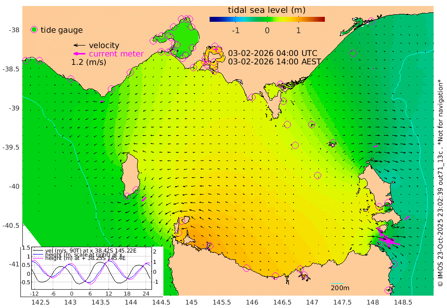 73cm/s 109T +9cm/s rms + 16cm/s 128T. CWTb1 63m 75cm/s 103T +8cm/s rms + 14cm/s 130T. C1A1 56m 139cm/s 104T +8cm/s rms + 12cm/s 12T. C1A3 27m 75cm/s 128T +0cm/s rms + 0cm/s 0T. CW1 32m 117cm/s 129T +11cm/s rms + 9cm/s 121T. CW2A1 44m 82cm/s 145T +7cm/s rms + 12cm/s 156T. CW2A2 44m 91cm/s 153T +7cm/s rms + 4cm/s 115T. CW3 33m 129cm/s 109T +9cm/s rms + 6cm/s 84T. CW4A1 30m 62cm/s 106T +5cm/s rms + 7cm/s 87T. CW4A2 36m 20cm/s 20T +9cm/s rms + 16cm/s 35T. CW6A1 37m 54cm/s 43T +6cm/s rms + 4cm/s 94T. CW6A2 31m 40cm/s 74T +4cm/s rms + 6cm/s 137T. BASS-CS91 47m 8cm/s 122T +11cm/s rms + 3cm/s -58T. BASS-CS91 70m 1cm/s 96T +10cm/s rms + 1cm/s 137T. BASS-CS91 47m 58cm/s -132T +10cm/s rms + 3cm/s 42T. BASS-CS91 53m 30cm/s -109T +8cm/s rms + 2cm/s 81T. BASS-CS91 64m 18cm/s -49T +6cm/s rms + 5cm/s 151T. BASS-UN91 115m 14cm/s -126T +4cm/s rms + 3cm/s 111T. Tas91 UNSW Mooring #1 65m 95m -27cm Lakes Entrance (Outer) -8cm Barracouta Platform 25cm Hogan Island 59cm Port Welshpool Pier 32cm Rabbit Island 40cm East Moncoeur Island 34cm Curtis Island 54cm Waratah Bay 70cm San Remo 71cm Elizabeth Island 80cm Bouchier Channel 78cm Tooradin 60cm Cowes Jetty 64cm Western Port (Stony Point) 84cm Western Port (Sandy Point) 37cm Flinders Jetty 17cm Mornington 19cm Sandringham 18cm Rosebud Jetty 17cm Hovell Pile 18cm South Channel 22cm Point Lonsdale 19cm Queenscliff 18cm West Channel Pile 22cm Barwon Heads 18cm St Leonards 20cm Point Richards (Corio Bay) 19cm Point Richards Channel 21cm Geelong 16cm Werribee 19cm Altona 20cm Wilson Spit 19cm Melbourne (Williamstown) 20cm St Kilda 21cm Lorne 8cm Apollo Bay 15cm Garden Cove 35cm Bass Pyramid -1cm Seal Bay 11cm King Island (Grassy) 78cm Stack Island 74cm Three Hummock Island 91cm Stanley 78cm Burnie 74cm Devonport 74cm Low Head 100cm Bell Bay 48cm Big River Cove 10cm Lady Barron Harbour -42cm Swan Island -47cm Eddystone Point 4cm St Helens -12cm Port Campbell -4cm Warrnambool -2cm Port Fairy