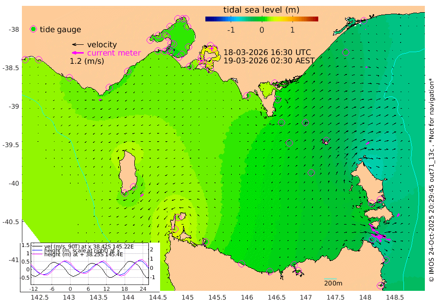 75cm/s 113T +9cm/s rms + 16cm/s 128T. CWTb1 63m 67cm/s 105T +8cm/s rms + 14cm/s 130T. C1A1 56m 96cm/s 103T +8cm/s rms + 12cm/s 12T. C1A3 27m 62cm/s 127T +0cm/s rms + 0cm/s 0T. CW1 32m 96cm/s 130T +11cm/s rms + 9cm/s 121T. CW2A1 44m 63cm/s 144T +7cm/s rms + 12cm/s 156T. CW2A2 44m 75cm/s 151T +7cm/s rms + 4cm/s 115T. CW3 33m 104cm/s 111T +9cm/s rms + 6cm/s 84T. CW4A1 30m 47cm/s 99T +5cm/s rms + 7cm/s 87T. CW4A2 36m 32cm/s 35T +9cm/s rms + 16cm/s 35T. CW6A1 37m 31cm/s 47T +6cm/s rms + 4cm/s 94T. CW6A2 31m 38cm/s 56T +4cm/s rms + 6cm/s 137T. BASS-CS91 47m 15cm/s 84T +11cm/s rms + 3cm/s -58T. BASS-CS91 70m 3cm/s 115T +10cm/s rms + 1cm/s 137T. BASS-CS91 47m 36cm/s -129T +10cm/s rms + 3cm/s 42T. BASS-CS91 53m 25cm/s -112T +8cm/s rms + 2cm/s 81T. BASS-CS91 64m 6cm/s -59T +6cm/s rms + 5cm/s 151T. BASS-UN91 115m 9cm/s -111T +4cm/s rms + 3cm/s 111T. Tas91 UNSW Mooring #1 65m 95m -30cm Lakes Entrance (Outer) -14cm Barracouta Platform -20cm Hogan Island 16cm Port Welshpool Pier -1cm Rabbit Island -8cm East Moncoeur Island -13cm Curtis Island 10cm Waratah Bay 37cm San Remo 39cm Elizabeth Island 59cm Bouchier Channel 59cm Tooradin 35cm Cowes Jetty 37cm Western Port (Stony Point) 56cm Western Port (Sandy Point) 12cm Flinders Jetty 17cm Mornington 18cm Sandringham 15cm Rosebud Jetty 15cm Hovell Pile 11cm South Channel 11cm Point Lonsdale 10cm Queenscliff 16cm West Channel Pile 8cm Barwon Heads 17cm St Leonards 19cm Point Richards (Corio Bay) 20cm Point Richards Channel 20cm Geelong 15cm Werribee 19cm Altona 21cm Wilson Spit 18cm Melbourne (Williamstown) 18cm St Kilda 13cm Lorne 11cm Apollo Bay -31cm Garden Cove -21cm Bass Pyramid 13cm Seal Bay 15cm King Island (Grassy) 33cm Stack Island 25cm Three Hummock Island 7cm Stanley -10cm Burnie -15cm Devonport -14cm Low Head 14cm Bell Bay -26cm Big River Cove -33cm Lady Barron Harbour -42cm Swan Island -35cm Eddystone Point -31cm St Helens 21cm Port Campbell 24cm Warrnambool 25cm Port Fairy