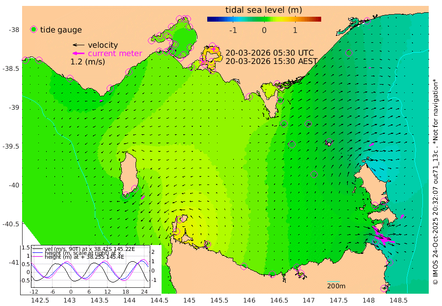 88cm/s 113T +9cm/s rms + 16cm/s 128T. CWTb1 63m 80cm/s 105T +8cm/s rms + 14cm/s 130T. C1A1 56m 120cm/s 104T +8cm/s rms + 12cm/s 12T. C1A3 27m 69cm/s 128T +0cm/s rms + 0cm/s 0T. CW1 32m 117cm/s 129T +11cm/s rms + 9cm/s 121T. CW2A1 44m 73cm/s 145T +7cm/s rms + 12cm/s 156T. CW2A2 44m 93cm/s 152T +7cm/s rms + 4cm/s 115T. CW3 33m 127cm/s 111T +9cm/s rms + 6cm/s 84T. CW4A1 30m 54cm/s 98T +5cm/s rms + 7cm/s 87T. CW4A2 36m 34cm/s 21T +9cm/s rms + 16cm/s 35T. CW6A1 37m 49cm/s 37T +6cm/s rms + 4cm/s 94T. CW6A2 31m 49cm/s 62T +4cm/s rms + 6cm/s 137T. BASS-CS91 47m 16cm/s 90T +11cm/s rms + 3cm/s -58T. BASS-CS91 70m 3cm/s 93T +10cm/s rms + 1cm/s 137T. BASS-CS91 47m 46cm/s -134T +10cm/s rms + 3cm/s 42T. BASS-CS91 53m 29cm/s -111T +8cm/s rms + 2cm/s 81T. BASS-CS91 64m 11cm/s -104T +6cm/s rms + 5cm/s 151T. BASS-UN91 115m 13cm/s -154T +4cm/s rms + 3cm/s 111T. Tas91 UNSW Mooring #1 65m 95m -37cm Lakes Entrance (Outer) -17cm Barracouta Platform -12cm Hogan Island 35cm Port Welshpool Pier 10cm Rabbit Island 2cm East Moncoeur Island -8cm Curtis Island 24cm Waratah Bay 59cm San Remo 61cm Elizabeth Island 80cm Bouchier Channel 83cm Tooradin 51cm Cowes Jetty 54cm Western Port (Stony Point) 84cm Western Port (Sandy Point) 19cm Flinders Jetty 21cm Mornington 24cm Sandringham 20cm Rosebud Jetty 21cm Hovell Pile 16cm South Channel 13cm Point Lonsdale 14cm Queenscliff 22cm West Channel Pile 8cm Barwon Heads 22cm St Leonards 26cm Point Richards (Corio Bay) 24cm Point Richards Channel 28cm Geelong 22cm Werribee 25cm Altona 25cm Wilson Spit 24cm Melbourne (Williamstown) 25cm St Kilda 12cm Lorne 9cm Apollo Bay -29cm Garden Cove -11cm Bass Pyramid 9cm Seal Bay 13cm King Island (Grassy) 55cm Stack Island 37cm Three Hummock Island 26cm Stanley 7cm Burnie 1cm Devonport 3cm Low Head 38cm Bell Bay -16cm Big River Cove -27cm Lady Barron Harbour -49cm Swan Island -46cm Eddystone Point -31cm St Helens 14cm Port Campbell 16cm Warrnambool 16cm Port Fairy