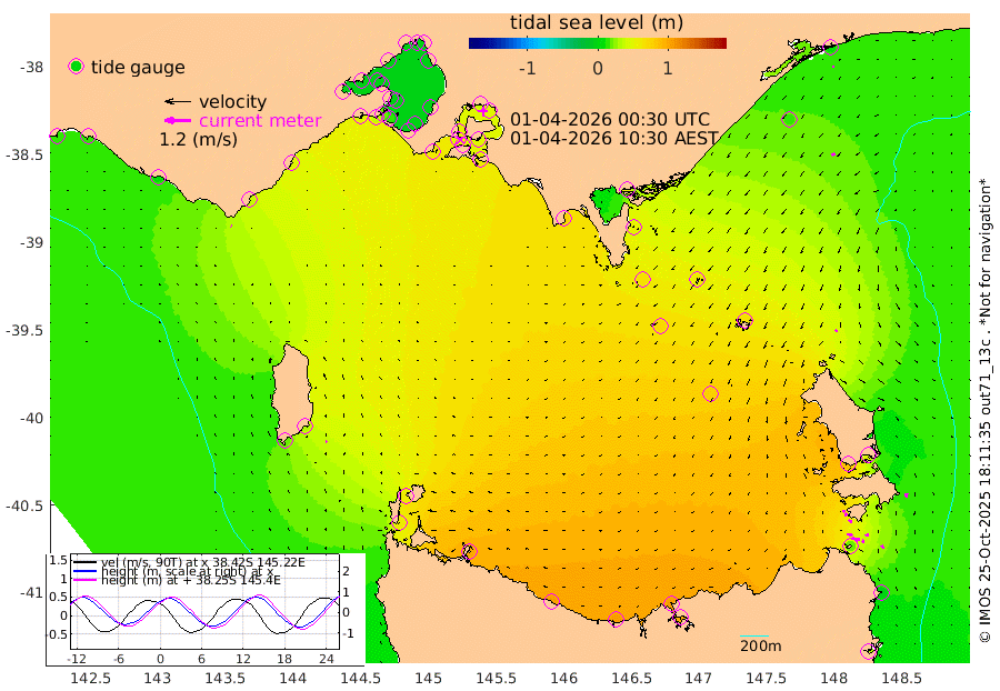 4cm/s 16T +9cm/s rms + 16cm/s 128T. CWTb1 63m 8cm/s 86T +8cm/s rms + 14cm/s 130T. C1A1 56m 38cm/s 104T +8cm/s rms + 12cm/s 12T. C1A3 27m 12cm/s 129T +0cm/s rms + 0cm/s 0T. CW1 32m 18cm/s 126T +11cm/s rms + 9cm/s 121T. CW2A1 44m 13cm/s 128T +7cm/s rms + 12cm/s 156T. CW2A2 44m 15cm/s 151T +7cm/s rms + 4cm/s 115T. CW3 33m 24cm/s 104T +9cm/s rms + 6cm/s 84T. CW4A1 30m 16cm/s 144T +5cm/s rms + 7cm/s 87T. CW4A2 36m 18cm/s -165T +9cm/s rms + 16cm/s 35T. CW6A1 37m 9cm/s -156T +6cm/s rms + 4cm/s 94T. CW6A2 31m 12cm/s 153T +4cm/s rms + 6cm/s 137T. BASS-CS91 47m 14cm/s -130T +11cm/s rms + 3cm/s -58T. BASS-CS91 70m 7cm/s -108T +10cm/s rms + 1cm/s 137T. BASS-CS91 47m 7cm/s -74T +10cm/s rms + 3cm/s 42T. BASS-CS91 53m 2cm/s -48T +8cm/s rms + 2cm/s 81T. BASS-CS91 64m 14cm/s 15T +6cm/s rms + 5cm/s 151T. BASS-UN91 115m 8cm/s -25T +4cm/s rms + 3cm/s 111T. Tas91 UNSW Mooring #1 65m 95m 9cm Lakes Entrance (Outer) 13cm Barracouta Platform 59cm Hogan Island 51cm Port Welshpool Pier 54cm Rabbit Island 64cm East Moncoeur Island 72cm Curtis Island 74cm Waratah Bay 57cm San Remo 49cm Elizabeth Island 45cm Bouchier Channel 37cm Tooradin 53cm Cowes Jetty 56cm Western Port (Stony Point) 42cm Western Port (Sandy Point) 60cm Flinders Jetty -5cm Mornington -4cm Sandringham -2cm Rosebud Jetty -2cm Hovell Pile 14cm South Channel 35cm Point Lonsdale 20cm Queenscliff -2cm West Channel Pile 47cm Barwon Heads -3cm St Leonards -3cm Point Richards (Corio Bay) -4cm Point Richards Channel -5cm Geelong -3cm Werribee -4cm Altona -5cm Wilson Spit -3cm Melbourne (Williamstown) -4cm St Kilda 49cm Lorne 37cm Apollo Bay 63cm Garden Cove 75cm Bass Pyramid 19cm Seal Bay 31cm King Island (Grassy) 59cm Stack Island 61cm Three Hummock Island 99cm Stanley 103cm Burnie 104cm Devonport 101cm Low Head 95cm Bell Bay 87cm Big River Cove 50cm Lady Barron Harbour 19cm Swan Island -4cm Eddystone Point 30cm St Helens 8cm Port Campbell 13cm Warrnambool 14cm Port Fairy