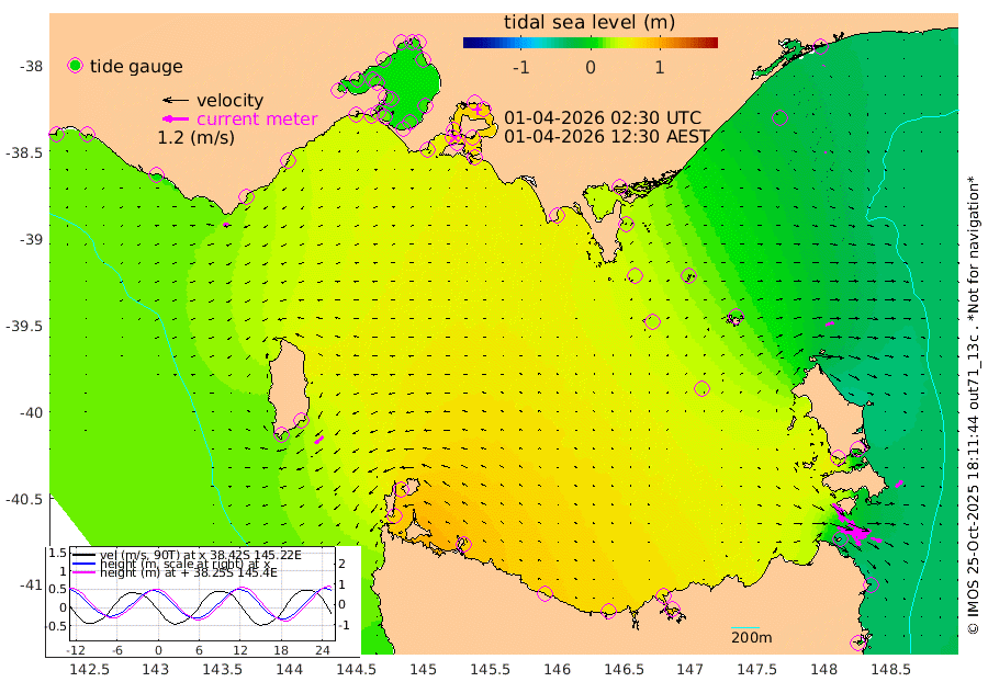 67cm/s 110T +9cm/s rms + 16cm/s 128T. CWTb1 63m 67cm/s 103T +8cm/s rms + 14cm/s 130T. C1A1 56m 119cm/s 104T +8cm/s rms + 12cm/s 12T. C1A3 27m 65cm/s 128T +0cm/s rms + 0cm/s 0T. CW1 32m 103cm/s 129T +11cm/s rms + 9cm/s 121T. CW2A1 44m 70cm/s 145T +7cm/s rms + 12cm/s 156T. CW2A2 44m 81cm/s 153T +7cm/s rms + 4cm/s 115T. CW3 33m 115cm/s 109T +9cm/s rms + 6cm/s 84T. CW4A1 30m 52cm/s 106T +5cm/s rms + 7cm/s 87T. CW4A2 36m 11cm/s 34T +9cm/s rms + 16cm/s 35T. CW6A1 37m 40cm/s 45T +6cm/s rms + 4cm/s 94T. CW6A2 31m 39cm/s 71T +4cm/s rms + 6cm/s 137T. BASS-CS91 47m 8cm/s 132T +11cm/s rms + 3cm/s -58T. BASS-CS91 70m 2cm/s -143T +10cm/s rms + 1cm/s 137T. BASS-CS91 47m 47cm/s -130T +10cm/s rms + 3cm/s 42T. BASS-CS91 53m 26cm/s -110T +8cm/s rms + 2cm/s 81T. BASS-CS91 64m 10cm/s -45T +6cm/s rms + 5cm/s 151T. BASS-UN91 115m 10cm/s -129T +4cm/s rms + 3cm/s 111T. Tas91 UNSW Mooring #1 65m 95m -25cm Lakes Entrance (Outer) -7cm Barracouta Platform 25cm Hogan Island 51cm Port Welshpool Pier 31cm Rabbit Island 39cm East Moncoeur Island 33cm Curtis Island 54cm Waratah Bay 69cm San Remo 67cm Elizabeth Island 75cm Bouchier Channel 71cm Tooradin 61cm Cowes Jetty 64cm Western Port (Stony Point) 77cm Western Port (Sandy Point) 45cm Flinders Jetty 12cm Mornington 13cm Sandringham 13cm Rosebud Jetty 13cm Hovell Pile 18cm South Channel 28cm Point Lonsdale 20cm Queenscliff 14cm West Channel Pile 32cm Barwon Heads 13cm St Leonards 15cm Point Richards (Corio Bay) 15cm Point Richards Channel 15cm Geelong 12cm Werribee 14cm Altona 14cm Wilson Spit 14cm Melbourne (Williamstown) 14cm St Kilda 35cm Lorne 26cm Apollo Bay 15cm Garden Cove 28cm Bass Pyramid 19cm Seal Bay 29cm King Island (Grassy) 78cm Stack Island 68cm Three Hummock Island 77cm Stanley 66cm Burnie 62cm Devonport 62cm Low Head 83cm Bell Bay 42cm Big River Cove 7cm Lady Barron Harbour -41cm Swan Island -44cm Eddystone Point -3cm St Helens 8cm Port Campbell 21cm Warrnambool 22cm Port Fairy