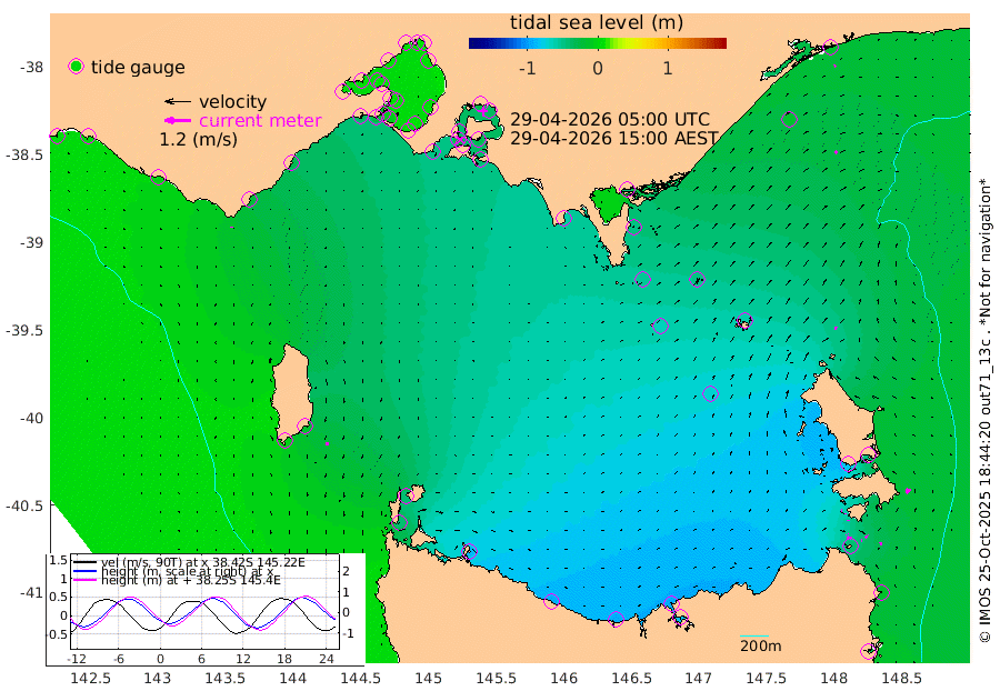 9cm/s 132T +9cm/s rms + 16cm/s 128T. CWTb1 63m 3cm/s 136T +8cm/s rms + 14cm/s 130T. C1A1 56m 19cm/s -83T +8cm/s rms + 12cm/s 12T. C1A3 27m 3cm/s -105T +0cm/s rms + 0cm/s 0T. CW1 32m 4cm/s -166T +11cm/s rms + 9cm/s 121T. CW2A1 44m 4cm/s -87T +7cm/s rms + 12cm/s 156T. CW2A2 44m 4cm/s 169T +7cm/s rms + 4cm/s 115T. CW3 33m 1cm/s 176T +9cm/s rms + 6cm/s 84T. CW4A1 30m 12cm/s -12T +5cm/s rms + 7cm/s 87T. CW4A2 36m 21cm/s 7T +9cm/s rms + 16cm/s 35T. CW6A1 37m 24cm/s 36T +6cm/s rms + 4cm/s 94T. CW6A2 31m 12cm/s 7T +4cm/s rms + 6cm/s 137T. BASS-CS91 47m 13cm/s 51T +11cm/s rms + 3cm/s -58T. BASS-CS91 70m 7cm/s 69T +10cm/s rms + 1cm/s 137T. BASS-CS91 47m 12cm/s -173T +10cm/s rms + 3cm/s 42T. BASS-CS91 53m 3cm/s -177T +8cm/s rms + 2cm/s 81T. BASS-CS91 64m 14cm/s -150T +6cm/s rms + 5cm/s 151T. BASS-UN91 115m 12cm/s 170T +4cm/s rms + 3cm/s 111T. Tas91 UNSW Mooring #1 65m 95m -14cm Lakes Entrance (Outer) -13cm Barracouta Platform -50cm Hogan Island -42cm Port Welshpool Pier -48cm Rabbit Island -53cm East Moncoeur Island -65cm Curtis Island -60cm Waratah Bay -41cm San Remo -33cm Elizabeth Island -34cm Bouchier Channel -25cm Tooradin -38cm Cowes Jetty -42cm Western Port (Stony Point) -26cm Western Port (Sandy Point) -45cm Flinders Jetty 8cm Mornington 7cm Sandringham 7cm Rosebud Jetty 6cm Hovell Pile -7cm South Channel -24cm Point Lonsdale -12cm Queenscliff 6cm West Channel Pile -35cm Barwon Heads 7cm St Leonards 7cm Point Richards (Corio Bay) 7cm Point Richards Channel 9cm Geelong 6cm Werribee 7cm Altona 8cm Wilson Spit 7cm Melbourne (Williamstown) 7cm St Kilda -33cm Lorne -22cm Apollo Bay -59cm Garden Cove -72cm Bass Pyramid -3cm Seal Bay -13cm King Island (Grassy) -45cm Stack Island -45cm Three Hummock Island -85cm Stanley -91cm Burnie -93cm Devonport -91cm Low Head -81cm Bell Bay -79cm Big River Cove -48cm Lady Barron Harbour -40cm Swan Island -15cm Eddystone Point -28cm St Helens -1cm Port Campbell 5cm Warrnambool 4cm Port Fairy