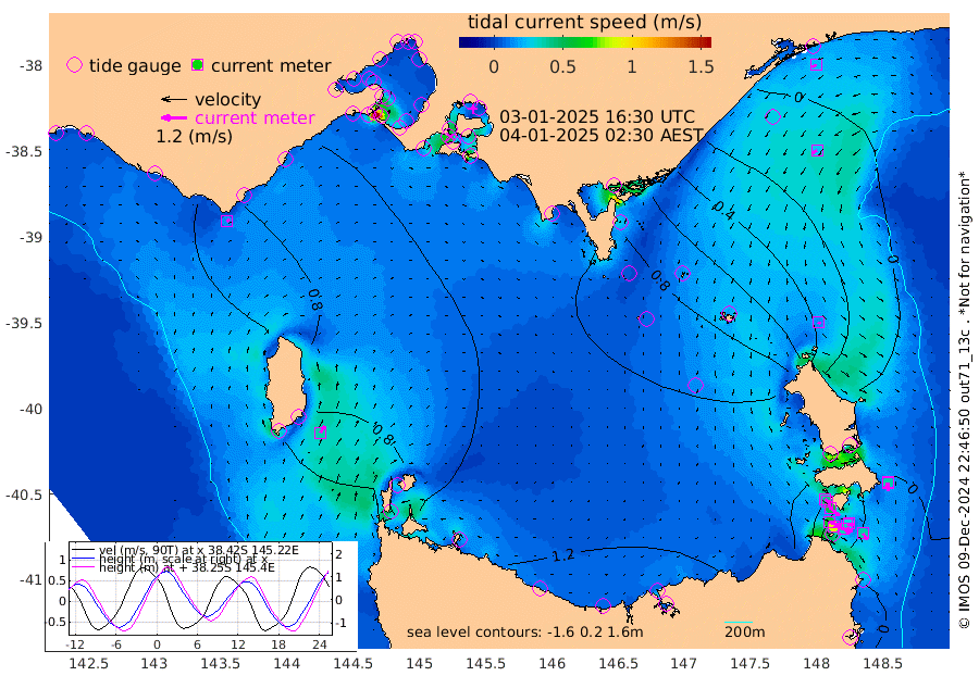 22cm/s 102T +9cm/s rms + 16cm/s 128T. CWTb1 63m 28cm/s 102T +8cm/s rms + 14cm/s 130T. C1A1 56m 89cm/s 104T +8cm/s rms + 12cm/s 12T. C1A3 27m 36cm/s 123T +0cm/s rms + 0cm/s 0T. CW1 32m 52cm/s 129T +11cm/s rms + 9cm/s 121T. CW2A1 44m 34cm/s 136T +7cm/s rms + 12cm/s 156T. CW2A2 44m 42cm/s 150T +7cm/s rms + 4cm/s 115T. CW3 33m 60cm/s 103T +9cm/s rms + 6cm/s 84T. CW4A1 30m 37cm/s 142T +5cm/s rms + 7cm/s 87T. CW4A2 36m 37cm/s 179T +9cm/s rms + 16cm/s 35T. CW6A1 37m 24cm/s -161T +6cm/s rms + 4cm/s 94T. CW6A2 31m 13cm/s 120T +4cm/s rms + 6cm/s 137T. BASS-CS91 47m 26cm/s -126T +11cm/s rms + 3cm/s -58T. BASS-CS91 70m 22cm/s -115T +10cm/s rms + 1cm/s 137T. BASS-CS91 47m 36cm/s 32T +10cm/s rms + 3cm/s 42T. BASS-CS91 53m 14cm/s 47T +8cm/s rms + 2cm/s 81T. BASS-CS91 64m 17cm/s 68T +6cm/s rms + 5cm/s 151T. BASS-UN91 115m 15cm/s 21T +4cm/s rms + 3cm/s 111T. Tas91 UNSW Mooring #1 65m 95m -3cm Lakes Entrance (Outer) 2cm Barracouta Platform 79cm Hogan Island 62cm Port Welshpool Pier 83cm Rabbit Island 95cm East Moncoeur Island 94cm Curtis Island 115cm Waratah Bay 110cm San Remo 97cm Elizabeth Island 95cm Bouchier Channel 79cm Tooradin 108cm Cowes Jetty 107cm Western Port (Stony Point) 90cm Western Port (Sandy Point) 110cm Flinders Jetty -8cm Mornington -10cm Sandringham -9cm Rosebud Jetty -8cm Hovell Pile 21cm South Channel 64cm Point Lonsdale 32cm Queenscliff -7cm West Channel Pile 90cm Barwon Heads -5cm St Leonards -9cm Point Richards (Corio Bay) -6cm Point Richards Channel -12cm Geelong -13cm Werribee -8cm Altona -7cm Wilson Spit -10cm Melbourne (Williamstown) -9cm St Kilda 96cm Lorne 82cm Apollo Bay 71cm Garden Cove 102cm Bass Pyramid 64cm Seal Bay 73cm King Island (Grassy) 87cm Stack Island 90cm Three Hummock Island 126cm Stanley 130cm Burnie 130cm Devonport 126cm Low Head 116cm Bell Bay 105cm Big River Cove 49cm Lady Barron Harbour 28cm Swan Island -3cm Eddystone Point 10cm St Helens 38cm Port Campbell 45cm Warrnambool 43cm Port Fairy