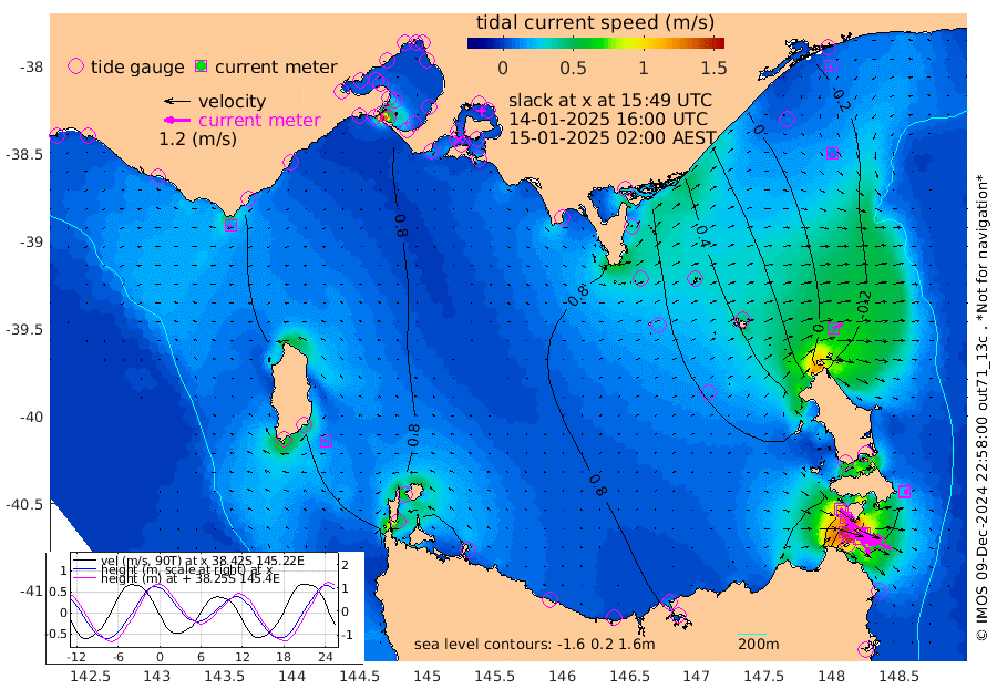 89cm/s 111T +9cm/s rms + 16cm/s 128T. CWTb1 63m 86cm/s 104T +8cm/s rms + 14cm/s 130T. C1A1 56m 142cm/s 104T +8cm/s rms + 12cm/s 12T. C1A3 27m 81cm/s 127T +0cm/s rms + 0cm/s 0T. CW1 32m 131cm/s 129T +11cm/s rms + 9cm/s 121T. CW2A1 44m 85cm/s 145T +7cm/s rms + 12cm/s 156T. CW2A2 44m 102cm/s 152T +7cm/s rms + 4cm/s 115T. CW3 33m 142cm/s 109T +9cm/s rms + 6cm/s 84T. CW4A1 30m 61cm/s 112T +5cm/s rms + 7cm/s 87T. CW4A2 36m 16cm/s 120T +9cm/s rms + 16cm/s 35T. CW6A1 37m 22cm/s 59T +6cm/s rms + 4cm/s 94T. CW6A2 31m 47cm/s 65T +4cm/s rms + 6cm/s 137T. BASS-CS91 47m 10cm/s 153T +11cm/s rms + 3cm/s -58T. BASS-CS91 70m 12cm/s -126T +10cm/s rms + 1cm/s 137T. BASS-CS91 47m 14cm/s -89T +10cm/s rms + 3cm/s 42T. BASS-CS91 53m 17cm/s -103T +8cm/s rms + 2cm/s 81T. BASS-CS91 64m 11cm/s 51T +6cm/s rms + 5cm/s 151T. BASS-UN91 115m 8cm/s -21T +4cm/s rms + 3cm/s 111T. Tas91 UNSW Mooring #1 65m 95m -16cm Lakes Entrance (Outer) -6cm Barracouta Platform 48cm Hogan Island 75cm Port Welshpool Pier 64cm Rabbit Island 66cm East Moncoeur Island 56cm Curtis Island 81cm Waratah Bay 106cm San Remo 102cm Elizabeth Island 120cm Bouchier Channel 112cm Tooradin 100cm Cowes Jetty 103cm Western Port (Stony Point) 115cm Western Port (Sandy Point) 78cm Flinders Jetty 13cm Mornington 13cm Sandringham 12cm Rosebud Jetty 13cm Hovell Pile 26cm South Channel 49cm Point Lonsdale 30cm Queenscliff 14cm West Channel Pile 61cm Barwon Heads 15cm St Leonards 17cm Point Richards (Corio Bay) 17cm Point Richards Channel 16cm Geelong 12cm Werribee 15cm Altona 17cm Wilson Spit 15cm Melbourne (Williamstown) 16cm St Kilda 68cm Lorne 61cm Apollo Bay 31cm Garden Cove 50cm Bass Pyramid 57cm Seal Bay 63cm King Island (Grassy) 96cm Stack Island 84cm Three Hummock Island 88cm Stanley 79cm Burnie 75cm Devonport 74cm Low Head 94cm Bell Bay 58cm Big River Cove 15cm Lady Barron Harbour -22cm Swan Island -29cm Eddystone Point -13cm St Helens 40cm Port Campbell 50cm Warrnambool 50cm Port Fairy