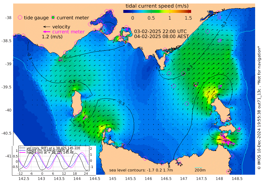 77cm/s 114T +9cm/s rms + 16cm/s 128T. CWTb1 63m 65cm/s 108T +8cm/s rms + 14cm/s 130T. C1A1 56m 98cm/s 106T +8cm/s rms + 12cm/s 12T. C1A3 27m 62cm/s 129T +0cm/s rms + 0cm/s 0T. CW1 32m 86cm/s 130T +11cm/s rms + 9cm/s 121T. CW2A1 44m 61cm/s 140T +7cm/s rms + 12cm/s 156T. CW2A2 44m 66cm/s 151T +7cm/s rms + 4cm/s 115T. CW3 33m 88cm/s 110T +9cm/s rms + 6cm/s 84T. CW4A1 30m 51cm/s 94T +5cm/s rms + 7cm/s 87T. CW4A2 36m 52cm/s 21T +9cm/s rms + 16cm/s 35T. CW6A1 37m 44cm/s 48T +6cm/s rms + 4cm/s 94T. CW6A2 31m 47cm/s 50T +4cm/s rms + 6cm/s 137T. BASS-CS91 47m 33cm/s 71T +11cm/s rms + 3cm/s -58T. BASS-CS91 70m 16cm/s 76T +10cm/s rms + 1cm/s 137T. BASS-CS91 47m 75cm/s -137T +10cm/s rms + 3cm/s 42T. BASS-CS91 53m 47cm/s -117T +8cm/s rms + 2cm/s 81T. BASS-CS91 64m 19cm/s -121T +6cm/s rms + 5cm/s 151T. BASS-UN91 115m 20cm/s -149T +4cm/s rms + 3cm/s 111T. Tas91 UNSW Mooring #1 65m 95m -17cm Lakes Entrance (Outer) -14cm Barracouta Platform -58cm Hogan Island 19cm Port Welshpool Pier -36cm Rabbit Island -58cm East Moncoeur Island -62cm Curtis Island -62cm Waratah Bay -24cm San Remo -4cm Elizabeth Island 26cm Bouchier Channel 40cm Tooradin -28cm Cowes Jetty -21cm Western Port (Stony Point) 28cm Western Port (Sandy Point) -69cm Flinders Jetty 28cm Mornington 29cm Sandringham 23cm Rosebud Jetty 24cm Hovell Pile -5cm South Channel -40cm Point Lonsdale -16cm Queenscliff 24cm West Channel Pile -56cm Barwon Heads 24cm St Leonards 30cm Point Richards (Corio Bay) 29cm Point Richards Channel 34cm Geelong 25cm Werribee 29cm Altona 32cm Wilson Spit 29cm Melbourne (Williamstown) 29cm St Kilda -69cm Lorne -61cm Apollo Bay -68cm Garden Cove -67cm Bass Pyramid -37cm Seal Bay -48cm King Island (Grassy) -1cm Stack Island -21cm Three Hummock Island -55cm Stanley -75cm Burnie -80cm Devonport -74cm Low Head -31cm Bell Bay -71cm Big River Cove -49cm Lady Barron Harbour -50cm Swan Island -28cm Eddystone Point -34cm St Helens -32cm Port Campbell -28cm Warrnambool -26cm Port Fairy