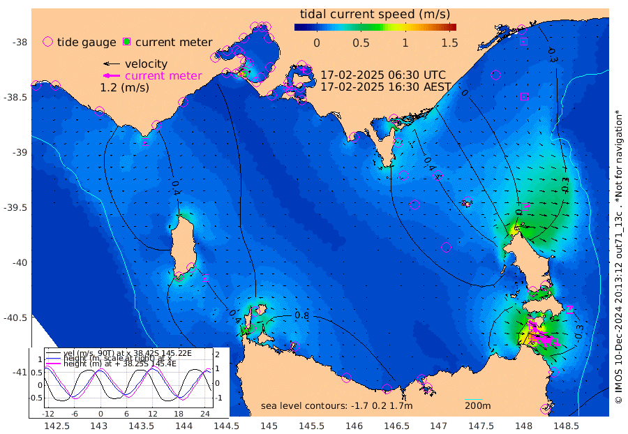 64cm/s 109T +9cm/s rms + 16cm/s 128T. CWTb1 63m 68cm/s 102T +8cm/s rms + 14cm/s 130T. C1A1 56m 124cm/s 104T +8cm/s rms + 12cm/s 12T. C1A3 27m 66cm/s 128T +0cm/s rms + 0cm/s 0T. CW1 32m 105cm/s 129T +11cm/s rms + 9cm/s 121T. CW2A1 44m 68cm/s 145T +7cm/s rms + 12cm/s 156T. CW2A2 44m 83cm/s 152T +7cm/s rms + 4cm/s 115T. CW3 33m 116cm/s 109T +9cm/s rms + 6cm/s 84T. CW4A1 30m 53cm/s 113T +5cm/s rms + 7cm/s 87T. CW4A2 36m 5cm/s 70T +9cm/s rms + 16cm/s 35T. CW6A1 37m 35cm/s 37T +6cm/s rms + 4cm/s 94T. CW6A2 31m 38cm/s 77T +4cm/s rms + 6cm/s 137T. BASS-CS91 47m 9cm/s -167T +11cm/s rms + 3cm/s -58T. BASS-CS91 70m 9cm/s -112T +10cm/s rms + 1cm/s 137T. BASS-CS91 47m 18cm/s -116T +10cm/s rms + 3cm/s 42T. BASS-CS91 53m 14cm/s -101T +8cm/s rms + 2cm/s 81T. BASS-CS91 64m 3cm/s 21T +6cm/s rms + 5cm/s 151T. BASS-UN91 115m 1cm/s -76T +4cm/s rms + 3cm/s 111T. Tas91 UNSW Mooring #1 65m 95m -23cm Lakes Entrance (Outer) -4cm Barracouta Platform 38cm Hogan Island 53cm Port Welshpool Pier 53cm Rabbit Island 55cm East Moncoeur Island 53cm Curtis Island 77cm Waratah Bay 91cm San Remo 85cm Elizabeth Island 99cm Bouchier Channel 95cm Tooradin 88cm Cowes Jetty 89cm Western Port (Stony Point) 94cm Western Port (Sandy Point) 67cm Flinders Jetty 7cm Mornington 10cm Sandringham 7cm Rosebud Jetty 9cm Hovell Pile 21cm South Channel 38cm Point Lonsdale 24cm Queenscliff 10cm West Channel Pile 44cm Barwon Heads 10cm St Leonards 12cm Point Richards (Corio Bay) 11cm Point Richards Channel 12cm Geelong 12cm Werribee 11cm Altona 10cm Wilson Spit 10cm Melbourne (Williamstown) 11cm St Kilda 50cm Lorne 36cm Apollo Bay 28cm Garden Cove 51cm Bass Pyramid 20cm Seal Bay 30cm King Island (Grassy) 80cm Stack Island 63cm Three Hummock Island 89cm Stanley 81cm Burnie 78cm Devonport 77cm Low Head 91cm Bell Bay 54cm Big River Cove 16cm Lady Barron Harbour -22cm Swan Island -35cm Eddystone Point -12cm St Helens 17cm Port Campbell 15cm Warrnambool 16cm Port Fairy