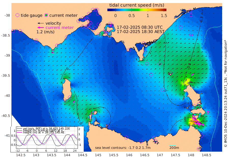 84cm/s 114T +9cm/s rms + 16cm/s 128T. CWTb1 63m 73cm/s 107T +8cm/s rms + 14cm/s 130T. C1A1 56m 109cm/s 104T +8cm/s rms + 12cm/s 12T. C1A3 27m 64cm/s 127T +0cm/s rms + 0cm/s 0T. CW1 32m 105cm/s 130T +11cm/s rms + 9cm/s 121T. CW2A1 44m 66cm/s 143T +7cm/s rms + 12cm/s 156T. CW2A2 44m 83cm/s 151T +7cm/s rms + 4cm/s 115T. CW3 33m 111cm/s 109T +9cm/s rms + 6cm/s 84T. CW4A1 30m 51cm/s 99T +5cm/s rms + 7cm/s 87T. CW4A2 36m 29cm/s 23T +9cm/s rms + 16cm/s 35T. CW6A1 37m 36cm/s 46T +6cm/s rms + 4cm/s 94T. CW6A2 31m 53cm/s 60T +4cm/s rms + 6cm/s 137T. BASS-CS91 47m 18cm/s 90T +11cm/s rms + 3cm/s -58T. BASS-CS91 70m 3cm/s 87T +10cm/s rms + 1cm/s 137T. BASS-CS91 47m 46cm/s -133T +10cm/s rms + 3cm/s 42T. BASS-CS91 53m 33cm/s -113T +8cm/s rms + 2cm/s 81T. BASS-CS91 64m 7cm/s -130T +6cm/s rms + 5cm/s 151T. BASS-UN91 115m 9cm/s -152T +4cm/s rms + 3cm/s 111T. Tas91 UNSW Mooring #1 65m 95m -19cm Lakes Entrance (Outer) -7cm Barracouta Platform -5cm Hogan Island 39cm Port Welshpool Pier 11cm Rabbit Island 2cm East Moncoeur Island -5cm Curtis Island 2cm Waratah Bay 35cm San Remo 45cm Elizabeth Island 67cm Bouchier Channel 77cm Tooradin 32cm Cowes Jetty 36cm Western Port (Stony Point) 68cm Western Port (Sandy Point) -3cm Flinders Jetty 19cm Mornington 21cm Sandringham 17cm Rosebud Jetty 18cm Hovell Pile 8cm South Channel -5cm Point Lonsdale 2cm Queenscliff 19cm West Channel Pile -14cm Barwon Heads 19cm St Leonards 23cm Point Richards (Corio Bay) 22cm Point Richards Channel 26cm Geelong 23cm Werribee 22cm Altona 23cm Wilson Spit 22cm Melbourne (Williamstown) 23cm St Kilda -15cm Lorne -18cm Apollo Bay -19cm Garden Cove -16cm Bass Pyramid -7cm Seal Bay -9cm King Island (Grassy) 39cm Stack Island 15cm Three Hummock Island 7cm Stanley -6cm Burnie -10cm Devonport -7cm Low Head 23cm Bell Bay -9cm Big River Cove -19cm Lady Barron Harbour -50cm Swan Island -35cm Eddystone Point -29cm St Helens -16cm Port Campbell -10cm Warrnambool -8cm Port Fairy