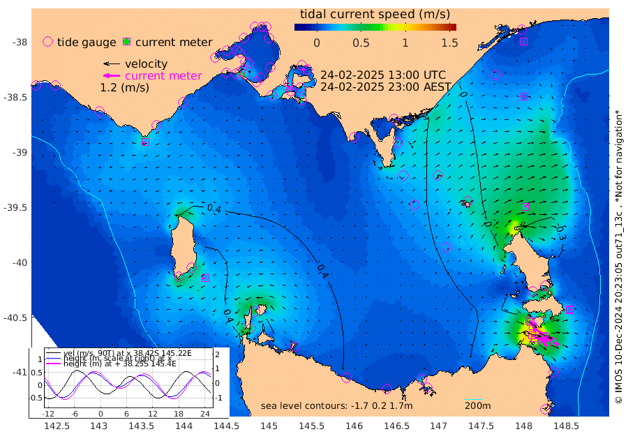 69cm/s 112T +9cm/s rms + 16cm/s 128T. CWTb1 63m 66cm/s 105T +8cm/s rms + 14cm/s 130T. C1A1 56m 102cm/s 104T +8cm/s rms + 12cm/s 12T. C1A3 27m 61cm/s 128T +0cm/s rms + 0cm/s 0T. CW1 32m 97cm/s 129T +11cm/s rms + 9cm/s 121T. CW2A1 44m 64cm/s 144T +7cm/s rms + 12cm/s 156T. CW2A2 44m 77cm/s 152T +7cm/s rms + 4cm/s 115T. CW3 33m 106cm/s 111T +9cm/s rms + 6cm/s 84T. CW4A1 30m 47cm/s 110T +5cm/s rms + 7cm/s 87T. CW4A2 36m 15cm/s 90T +9cm/s rms + 16cm/s 35T. CW6A1 37m 12cm/s 64T +6cm/s rms + 4cm/s 94T. CW6A2 31m 39cm/s 59T +4cm/s rms + 6cm/s 137T. BASS-CS91 47m 12cm/s 114T +11cm/s rms + 3cm/s -58T. BASS-CS91 70m 6cm/s -143T +10cm/s rms + 1cm/s 137T. BASS-CS91 47m 20cm/s -113T +10cm/s rms + 3cm/s 42T. BASS-CS91 53m 22cm/s -109T +8cm/s rms + 2cm/s 81T. BASS-CS91 64m 7cm/s 52T +6cm/s rms + 5cm/s 151T. BASS-UN91 115m 6cm/s -50T +4cm/s rms + 3cm/s 111T. Tas91 UNSW Mooring #1 65m 95m -13cm Lakes Entrance (Outer) -4cm Barracouta Platform 6cm Hogan Island 49cm Port Welshpool Pier 22cm Rabbit Island 14cm East Moncoeur Island 12cm Curtis Island 28cm Waratah Bay 50cm San Remo 52cm Elizabeth Island 69cm Bouchier Channel 69cm Tooradin 41cm Cowes Jetty 48cm Western Port (Stony Point) 70cm Western Port (Sandy Point) 23cm Flinders Jetty 10cm Mornington 12cm Sandringham 10cm Rosebud Jetty 11cm Hovell Pile 12cm South Channel 16cm Point Lonsdale 12cm Queenscliff 12cm West Channel Pile 19cm Barwon Heads 11cm St Leonards 14cm Point Richards (Corio Bay) 13cm Point Richards Channel 14cm Geelong 8cm Werribee 13cm Altona 14cm Wilson Spit 13cm Melbourne (Williamstown) 13cm St Kilda 22cm Lorne 24cm Apollo Bay -5cm Garden Cove 9cm Bass Pyramid 31cm Seal Bay 33cm King Island (Grassy) 58cm Stack Island 44cm Three Hummock Island 38cm Stanley 22cm Burnie 18cm Devonport 20cm Low Head 46cm Bell Bay 10cm Big River Cove -4cm Lady Barron Harbour -14cm Swan Island -21cm Eddystone Point -13cm St Helens 22cm Port Campbell 33cm Warrnambool 33cm Port Fairy