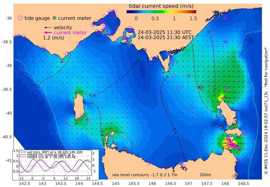 76cm/s 112T +9cm/s rms + 16cm/s 128T. CWTb1 63m 73cm/s 105T +8cm/s rms + 14cm/s 130T. C1A1 56m 116cm/s 104T +8cm/s rms + 12cm/s 12T. C1A3 27m 69cm/s 128T +0cm/s rms + 0cm/s 0T. CW1 32m 106cm/s 129T +11cm/s rms + 9cm/s 121T. CW2A1 44m 72cm/s 144T +7cm/s rms + 12cm/s 156T. CW2A2 44m 85cm/s 152T +7cm/s rms + 4cm/s 115T. CW3 33m 116cm/s 111T +9cm/s rms + 6cm/s 84T. CW4A1 30m 53cm/s 110T +5cm/s rms + 7cm/s 87T. CW4A2 36m 17cm/s 85T +9cm/s rms + 16cm/s 35T. CW6A1 37m 13cm/s 60T +6cm/s rms + 4cm/s 94T. CW6A2 31m 45cm/s 60T +4cm/s rms + 6cm/s 137T. BASS-CS91 47m 15cm/s 113T +11cm/s rms + 3cm/s -58T. BASS-CS91 70m 6cm/s -145T +10cm/s rms + 1cm/s 137T. BASS-CS91 47m 26cm/s -116T +10cm/s rms + 3cm/s 42T. BASS-CS91 53m 29cm/s -109T +8cm/s rms + 2cm/s 81T. BASS-CS91 64m 6cm/s 49T +6cm/s rms + 5cm/s 151T. BASS-UN91 115m 7cm/s -52T +4cm/s rms + 3cm/s 111T. Tas91 UNSW Mooring #1 65m 95m -7cm Lakes Entrance (Outer) 0cm Barracouta Platform 14cm Hogan Island 67cm Port Welshpool Pier 33cm Rabbit Island 21cm East Moncoeur Island 20cm Curtis Island 32cm Waratah Bay 56cm San Remo 61cm Elizabeth Island 82cm Bouchier Channel 84cm Tooradin 46cm Cowes Jetty 55cm Western Port (Stony Point) 83cm Western Port (Sandy Point) 21cm Flinders Jetty 15cm Mornington 17cm Sandringham 14cm Rosebud Jetty 15cm Hovell Pile 13cm South Channel 14cm Point Lonsdale 11cm Queenscliff 16cm West Channel Pile 14cm Barwon Heads 15cm St Leonards 19cm Point Richards (Corio Bay) 18cm Point Richards Channel 20cm Geelong 12cm Werribee 18cm Altona 19cm Wilson Spit 17cm Melbourne (Williamstown) 18cm St Kilda 15cm Lorne 14cm Apollo Bay 2cm Garden Cove 19cm Bass Pyramid 22cm Seal Bay 23cm King Island (Grassy) 63cm Stack Island 48cm Three Hummock Island 48cm Stanley 32cm Burnie 28cm Devonport 31cm Low Head 61cm Bell Bay 21cm Big River Cove 5cm Lady Barron Harbour -8cm Swan Island -17cm Eddystone Point -9cm St Helens 9cm Port Campbell 21cm Warrnambool 21cm Port Fairy