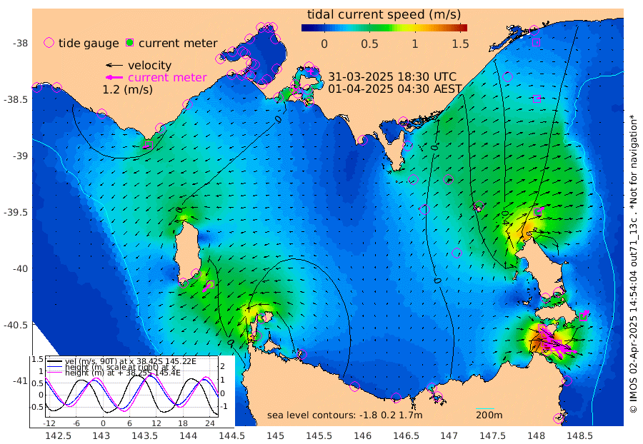 104cm/s 113T +9cm/s rms + 16cm/s 128T. CWTb1 63m 93cm/s 106T +8cm/s rms + 14cm/s 130T. C1A1 56m 155cm/s 104T +8cm/s rms + 12cm/s 12T. C1A3 27m 94cm/s 127T +0cm/s rms + 0cm/s 0T. CW1 32m 133cm/s 130T +11cm/s rms + 9cm/s 121T. CW2A1 44m 97cm/s 144T +7cm/s rms + 12cm/s 156T. CW2A2 44m 103cm/s 152T +7cm/s rms + 4cm/s 115T. CW3 33m 139cm/s 110T +9cm/s rms + 6cm/s 84T. CW4A1 30m 75cm/s 100T +5cm/s rms + 7cm/s 87T. CW4A2 36m 52cm/s 22T +9cm/s rms + 16cm/s 35T. CW6A1 37m 61cm/s 44T +6cm/s rms + 4cm/s 94T. CW6A2 31m 56cm/s 60T +4cm/s rms + 6cm/s 137T. BASS-CS91 47m 24cm/s 79T +11cm/s rms + 3cm/s -58T. BASS-CS91 70m 10cm/s 79T +10cm/s rms + 1cm/s 137T. BASS-CS91 47m 76cm/s -135T +10cm/s rms + 3cm/s 42T. BASS-CS91 53m 47cm/s -113T +8cm/s rms + 2cm/s 81T. BASS-CS91 64m 18cm/s -98T +6cm/s rms + 5cm/s 151T. BASS-UN91 115m 20cm/s -144T +4cm/s rms + 3cm/s 111T. Tas91 UNSW Mooring #1 65m 95m -39cm Lakes Entrance (Outer) -24cm Barracouta Platform -29cm Hogan Island 40cm Port Welshpool Pier -3cm Rabbit Island -15cm East Moncoeur Island -24cm Curtis Island -4cm Waratah Bay 39cm San Remo 50cm Elizabeth Island 80cm Bouchier Channel 87cm Tooradin 33cm Cowes Jetty 37cm Western Port (Stony Point) 81cm Western Port (Sandy Point) -14cm Flinders Jetty 26cm Mornington 27cm Sandringham 22cm Rosebud Jetty 23cm Hovell Pile 7cm South Channel -10cm Point Lonsdale 0cm Queenscliff 24cm West Channel Pile -17cm Barwon Heads 24cm St Leonards 29cm Point Richards (Corio Bay) 29cm Point Richards Channel 32cm Geelong 23cm Werribee 28cm Altona 31cm Wilson Spit 27cm Melbourne (Williamstown) 28cm St Kilda -27cm Lorne -30cm Apollo Bay -46cm Garden Cove -23cm Bass Pyramid -22cm Seal Bay -23cm King Island (Grassy) 51cm Stack Island 28cm Three Hummock Island 15cm Stanley -7cm Burnie -13cm Devonport -9cm Low Head 35cm Bell Bay -27cm Big River Cove -40cm Lady Barron Harbour -55cm Swan Island -44cm Eddystone Point -38cm St Helens -23cm Port Campbell -22cm Warrnambool -20cm Port Fairy