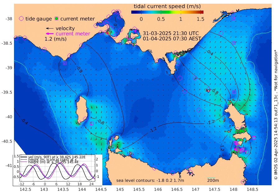 21cm/s -77T +9cm/s rms + 16cm/s 128T. CWTb1 63m 25cm/s -80T +8cm/s rms + 14cm/s 130T. C1A1 56m 70cm/s -78T +8cm/s rms + 12cm/s 12T. C1A3 27m 32cm/s -62T +0cm/s rms + 0cm/s 0T. CW1 32m 45cm/s -55T +11cm/s rms + 9cm/s 121T. CW2A1 44m 36cm/s -39T +7cm/s rms + 12cm/s 156T. CW2A2 44m 32cm/s -32T +7cm/s rms + 4cm/s 115T. CW3 33m 53cm/s -76T +9cm/s rms + 6cm/s 84T. CW4A1 30m 32cm/s -49T +5cm/s rms + 7cm/s 87T. CW4A2 36m 24cm/s 3T +9cm/s rms + 16cm/s 35T. CW6A1 37m 17cm/s 20T +6cm/s rms + 4cm/s 94T. CW6A2 31m 12cm/s -51T +4cm/s rms + 6cm/s 137T. BASS-CS91 47m 19cm/s 43T +11cm/s rms + 3cm/s -58T. BASS-CS91 70m 14cm/s 65T +10cm/s rms + 1cm/s 137T. BASS-CS91 47m 27cm/s -156T +10cm/s rms + 3cm/s 42T. BASS-CS91 53m 9cm/s -152T +8cm/s rms + 2cm/s 81T. BASS-CS91 64m 26cm/s -156T +6cm/s rms + 5cm/s 151T. BASS-UN91 115m 19cm/s 176T +4cm/s rms + 3cm/s 111T. Tas91 UNSW Mooring #1 65m 95m -7cm Lakes Entrance (Outer) -12cm Barracouta Platform -99cm Hogan Island -80cm Port Welshpool Pier -98cm Rabbit Island -115cm East Moncoeur Island -111cm Curtis Island -135cm Waratah Bay -125cm San Remo -110cm Elizabeth Island -99cm Bouchier Channel -81cm Tooradin -118cm Cowes Jetty -118cm Western Port (Stony Point) -98cm Western Port (Sandy Point) -125cm Flinders Jetty -3cm Mornington -3cm Sandringham -6cm Rosebud Jetty -5cm Hovell Pile -35cm South Channel -75cm Point Lonsdale -46cm Queenscliff -6cm West Channel Pile -90cm Barwon Heads -7cm St Leonards -4cm Point Richards (Corio Bay) -5cm Point Richards Channel -1cm Geelong -1cm Werribee -4cm Altona -4cm Wilson Spit -4cm Melbourne (Williamstown) -4cm St Kilda -105cm Lorne -86cm Apollo Bay -92cm Garden Cove -116cm Bass Pyramid -57cm Seal Bay -73cm King Island (Grassy) -89cm Stack Island -104cm Three Hummock Island -149cm Stanley -154cm Burnie -155cm Devonport -151cm Low Head -140cm Bell Bay -125cm Big River Cove -66cm Lady Barron Harbour -36cm Swan Island -8cm Eddystone Point -37cm St Helens -41cm Port Campbell -45cm Warrnambool -42cm Port Fairy