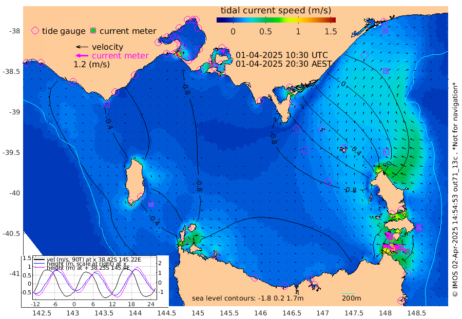 41cm/s -73T +9cm/s rms + 16cm/s 128T. CWTb1 63m 45cm/s -76T +8cm/s rms + 14cm/s 130T. C1A1 56m 113cm/s -76T +8cm/s rms + 12cm/s 12T. C1A3 27m 52cm/s -58T +0cm/s rms + 0cm/s 0T. CW1 32m 74cm/s -54T +11cm/s rms + 9cm/s 121T. CW2A1 44m 56cm/s -40T +7cm/s rms + 12cm/s 156T. CW2A2 44m 53cm/s -29T +7cm/s rms + 4cm/s 115T. CW3 33m 81cm/s -75T +9cm/s rms + 6cm/s 84T. CW4A1 30m 50cm/s -58T +5cm/s rms + 7cm/s 87T. CW4A2 36m 8cm/s -9T +9cm/s rms + 16cm/s 35T. CW6A1 37m 13cm/s -102T +6cm/s rms + 4cm/s 94T. CW6A2 31m 22cm/s -76T +4cm/s rms + 6cm/s 137T. BASS-CS91 47m 19cm/s 53T +11cm/s rms + 3cm/s -58T. BASS-CS91 70m 14cm/s 68T +10cm/s rms + 1cm/s 137T. BASS-CS91 47m 13cm/s 71T +10cm/s rms + 3cm/s 42T. BASS-CS91 53m 5cm/s 104T +8cm/s rms + 2cm/s 81T. BASS-CS91 64m 3cm/s -160T +6cm/s rms + 5cm/s 151T. BASS-UN91 115m 1cm/s 45T +4cm/s rms + 3cm/s 111T. Tas91 UNSW Mooring #1 65m 95m 25cm Lakes Entrance (Outer) 9cm Barracouta Platform -52cm Hogan Island -47cm Port Welshpool Pier -57cm Rabbit Island -72cm East Moncoeur Island -71cm Curtis Island -95cm Waratah Bay -98cm San Remo -86cm Elizabeth Island -92cm Bouchier Channel -78cm Tooradin -96cm Cowes Jetty -93cm Western Port (Stony Point) -84cm Western Port (Sandy Point) -88cm Flinders Jetty 6cm Mornington 5cm Sandringham 6cm Rosebud Jetty 5cm Hovell Pile -16cm South Channel -48cm Point Lonsdale -23cm Queenscliff 4cm West Channel Pile -67cm Barwon Heads 3cm St Leonards 5cm Point Richards (Corio Bay) 3cm Point Richards Channel 7cm Geelong 7cm Werribee 4cm Altona 5cm Wilson Spit 6cm Melbourne (Williamstown) 5cm St Kilda -68cm Lorne -51cm Apollo Bay -47cm Garden Cove -78cm Bass Pyramid -26cm Seal Bay -41cm King Island (Grassy) -99cm Stack Island -86cm Three Hummock Island -122cm Stanley -122cm Burnie -120cm Devonport -116cm Low Head -117cm Bell Bay -86cm Big River Cove -28cm Lady Barron Harbour 7cm Swan Island 31cm Eddystone Point 2cm St Helens -14cm Port Campbell -16cm Warrnambool -16cm Port Fairy