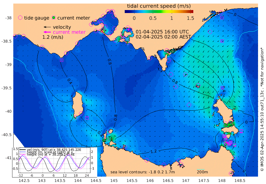 8cm/s 78T +9cm/s rms + 16cm/s 128T. CWTb1 63m 16cm/s 95T +8cm/s rms + 14cm/s 130T. C1A1 56m 58cm/s 105T +8cm/s rms + 12cm/s 12T. C1A3 27m 25cm/s 122T +0cm/s rms + 0cm/s 0T. CW1 32m 33cm/s 128T +11cm/s rms + 9cm/s 121T. CW2A1 44m 27cm/s 134T +7cm/s rms + 12cm/s 156T. CW2A2 44m 26cm/s 150T +7cm/s rms + 4cm/s 115T. CW3 33m 38cm/s 101T +9cm/s rms + 6cm/s 84T. CW4A1 30m 29cm/s 137T +5cm/s rms + 7cm/s 87T. CW4A2 36m 18cm/s -170T +9cm/s rms + 16cm/s 35T. CW6A1 37m 16cm/s 177T +6cm/s rms + 4cm/s 94T. CW6A2 31m 12cm/s 168T +4cm/s rms + 6cm/s 137T. BASS-CS91 47m 14cm/s -130T +11cm/s rms + 3cm/s -58T. BASS-CS91 70m 6cm/s -111T +10cm/s rms + 1cm/s 137T. BASS-CS91 47m 9cm/s -6T +10cm/s rms + 3cm/s 42T. BASS-CS91 53m 5cm/s -8T +8cm/s rms + 2cm/s 81T. BASS-CS91 64m 24cm/s 4T +6cm/s rms + 5cm/s 151T. BASS-UN91 115m 13cm/s -21T +4cm/s rms + 3cm/s 111T. Tas91 UNSW Mooring #1 65m 95m 1cm Lakes Entrance (Outer) 5cm Barracouta Platform 79cm Hogan Island 61cm Port Welshpool Pier 76cm Rabbit Island 93cm East Moncoeur Island 94cm Curtis Island 111cm Waratah Bay 97cm San Remo 83cm Elizabeth Island 76cm Bouchier Channel 59cm Tooradin 93cm Cowes Jetty 91cm Western Port (Stony Point) 73cm Western Port (Sandy Point) 97cm Flinders Jetty 2cm Mornington 0cm Sandringham 3cm Rosebud Jetty 3cm Hovell Pile 25cm South Channel 57cm Point Lonsdale 35cm Queenscliff 4cm West Channel Pile 71cm Barwon Heads 4cm St Leonards 2cm Point Richards (Corio Bay) 3cm Point Richards Channel -1cm Geelong 1cm Werribee 1cm Altona 2cm Wilson Spit 1cm Melbourne (Williamstown) 2cm St Kilda 76cm Lorne 57cm Apollo Bay 78cm Garden Cove 102cm Bass Pyramid 24cm Seal Bay 42cm King Island (Grassy) 71cm Stack Island 87cm Three Hummock Island 134cm Stanley 140cm Burnie 141cm Devonport 137cm Low Head 126cm Bell Bay 109cm Big River Cove 53cm Lady Barron Harbour 30cm Swan Island 6cm Eddystone Point 34cm St Helens 18cm Port Campbell 12cm Warrnambool 11cm Port Fairy