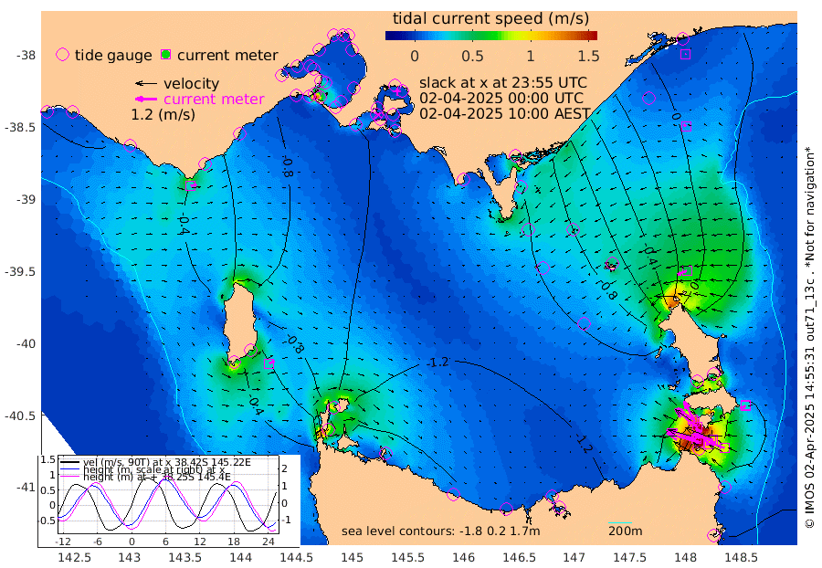 107cm/s -69T +9cm/s rms + 16cm/s 128T. CWTb1 63m 107cm/s -75T +8cm/s rms + 14cm/s 130T. C1A1 56m 191cm/s -75T +8cm/s rms + 12cm/s 12T. C1A3 27m 104cm/s -54T +0cm/s rms + 0cm/s 0T. CW1 32m 160cm/s -51T +11cm/s rms + 9cm/s 121T. CW2A1 44m 110cm/s -38T +7cm/s rms + 12cm/s 156T. CW2A2 44m 128cm/s -27T +7cm/s rms + 4cm/s 115T. CW3 33m 172cm/s -72T +9cm/s rms + 6cm/s 84T. CW4A1 30m 87cm/s -68T +5cm/s rms + 7cm/s 87T. CW4A2 36m 21cm/s -132T +9cm/s rms + 16cm/s 35T. CW6A1 37m 32cm/s -119T +6cm/s rms + 4cm/s 94T. CW6A2 31m 53cm/s -112T +4cm/s rms + 6cm/s 137T. BASS-CS91 47m 16cm/s -60T +11cm/s rms + 3cm/s -58T. BASS-CS91 70m 3cm/s 21T +10cm/s rms + 1cm/s 137T. BASS-CS91 47m 33cm/s 63T +10cm/s rms + 3cm/s 42T. BASS-CS91 53m 34cm/s 77T +8cm/s rms + 2cm/s 81T. BASS-CS91 64m 27cm/s 174T +6cm/s rms + 5cm/s 151T. BASS-UN91 115m 16cm/s 130T +4cm/s rms + 3cm/s 111T. Tas91 UNSW Mooring #1 65m 95m 5cm Lakes Entrance (Outer) -5cm Barracouta Platform -82cm Hogan Island -127cm Port Welshpool Pier -104cm Rabbit Island -103cm East Moncoeur Island -92cm Curtis Island -121cm Waratah Bay -150cm San Remo -152cm Elizabeth Island -166cm Bouchier Channel -159cm Tooradin -139cm Cowes Jetty -143cm Western Port (Stony Point) -168cm Western Port (Sandy Point) -102cm Flinders Jetty -33cm Mornington -35cm Sandringham -33cm Rosebud Jetty -33cm Hovell Pile -43cm South Channel -60cm Point Lonsdale -47cm Queenscliff -34cm West Channel Pile -63cm Barwon Heads -35cm St Leonards -38cm Point Richards (Corio Bay) -37cm Point Richards Channel -37cm Geelong -30cm Werribee -36cm Altona -38cm Wilson Spit -35cm Melbourne (Williamstown) -37cm St Kilda -69cm Lorne -51cm Apollo Bay -60cm Garden Cove -93cm Bass Pyramid -37cm Seal Bay -47cm King Island (Grassy) -110cm Stack Island -113cm Three Hummock Island -142cm Stanley -131cm Burnie -128cm Devonport -128cm Low Head -154cm Bell Bay -99cm Big River Cove -41cm Lady Barron Harbour 0cm Swan Island 12cm Eddystone Point -14cm St Helens -15cm Port Campbell -22cm Warrnambool -20cm Port Fairy