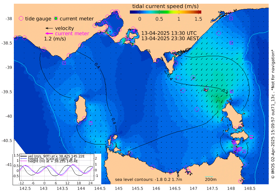 20cm/s -61T +9cm/s rms + 16cm/s 128T. CWTb1 63m 13cm/s -70T +8cm/s rms + 14cm/s 130T. C1A1 56m 1cm/s 86T +8cm/s rms + 12cm/s 12T. C1A3 27m 4cm/s -35T +0cm/s rms + 0cm/s 0T. CW1 32m 14cm/s -46T +11cm/s rms + 9cm/s 121T. CW2A1 44m 6cm/s 17T +7cm/s rms + 12cm/s 156T. CW2A2 44m 9cm/s -26T +7cm/s rms + 4cm/s 115T. CW3 33m 13cm/s -63T +9cm/s rms + 6cm/s 84T. CW4A1 30m 13cm/s -173T +5cm/s rms + 7cm/s 87T. CW4A2 36m 20cm/s -173T +9cm/s rms + 16cm/s 35T. CW6A1 37m 34cm/s -150T +6cm/s rms + 4cm/s 94T. CW6A2 31m 18cm/s -140T +4cm/s rms + 6cm/s 137T. BASS-CS91 47m 13cm/s -121T +11cm/s rms + 3cm/s -58T. BASS-CS91 70m 7cm/s -114T +10cm/s rms + 1cm/s 137T. BASS-CS91 47m 19cm/s 28T +10cm/s rms + 3cm/s 42T. BASS-CS91 53m 8cm/s 49T +8cm/s rms + 2cm/s 81T. BASS-CS91 64m 17cm/s 23T +6cm/s rms + 5cm/s 151T. BASS-UN91 115m 13cm/s -7T +4cm/s rms + 3cm/s 111T. Tas91 UNSW Mooring #1 65m 95m 8cm Lakes Entrance (Outer) 9cm Barracouta Platform 42cm Hogan Island 24cm Port Welshpool Pier 36cm Rabbit Island 44cm East Moncoeur Island 54cm Curtis Island 61cm Waratah Bay 38cm San Remo 26cm Elizabeth Island 16cm Bouchier Channel 6cm Tooradin 34cm Cowes Jetty 36cm Western Port (Stony Point) 15cm Western Port (Sandy Point) 50cm Flinders Jetty -6cm Mornington -7cm Sandringham -5cm Rosebud Jetty -5cm Hovell Pile 11cm South Channel 32cm Point Lonsdale 18cm Queenscliff -5cm West Channel Pile 41cm Barwon Heads -5cm St Leonards -7cm Point Richards (Corio Bay) -6cm Point Richards Channel -10cm Geelong -8cm Werribee -7cm Altona -7cm Wilson Spit -7cm Melbourne (Williamstown) -7cm St Kilda 46cm Lorne 37cm Apollo Bay 48cm Garden Cove 61cm Bass Pyramid 17cm Seal Bay 28cm King Island (Grassy) 24cm Stack Island 42cm Three Hummock Island 74cm Stanley 78cm Burnie 79cm Devonport 77cm Low Head 64cm Bell Bay 62cm Big River Cove 36cm Lady Barron Harbour 38cm Swan Island 14cm Eddystone Point 31cm St Helens 18cm Port Campbell 16cm Warrnambool 15cm Port Fairy
