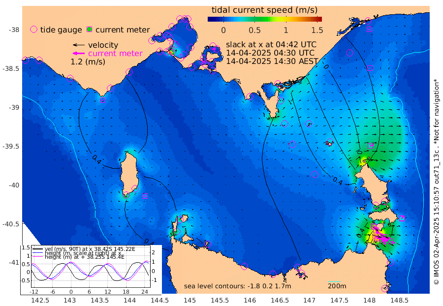 64cm/s 110T +9cm/s rms + 16cm/s 128T. CWTb1 63m 65cm/s 103T +8cm/s rms + 14cm/s 130T. C1A1 56m 110cm/s 104T +8cm/s rms + 12cm/s 12T. C1A3 27m 62cm/s 127T +0cm/s rms + 0cm/s 0T. CW1 32m 100cm/s 129T +11cm/s rms + 9cm/s 121T. CW2A1 44m 64cm/s 146T +7cm/s rms + 12cm/s 156T. CW2A2 44m 79cm/s 152T +7cm/s rms + 4cm/s 115T. CW3 33m 109cm/s 109T +9cm/s rms + 6cm/s 84T. CW4A1 30m 48cm/s 110T +5cm/s rms + 7cm/s 87T. CW4A2 36m 6cm/s 89T +9cm/s rms + 16cm/s 35T. CW6A1 37m 29cm/s 40T +6cm/s rms + 4cm/s 94T. CW6A2 31m 35cm/s 72T +4cm/s rms + 6cm/s 137T. BASS-CS91 47m 7cm/s -173T +11cm/s rms + 3cm/s -58T. BASS-CS91 70m 9cm/s -116T +10cm/s rms + 1cm/s 137T. BASS-CS91 47m 14cm/s -111T +10cm/s rms + 3cm/s 42T. BASS-CS91 53m 10cm/s -101T +8cm/s rms + 2cm/s 81T. BASS-CS91 64m 3cm/s 74T +6cm/s rms + 5cm/s 151T. BASS-UN91 115m 0cm/s -143T +4cm/s rms + 3cm/s 111T. Tas91 UNSW Mooring #1 65m 95m -23cm Lakes Entrance (Outer) -6cm Barracouta Platform 32cm Hogan Island 47cm Port Welshpool Pier 47cm Rabbit Island 50cm East Moncoeur Island 45cm Curtis Island 73cm Waratah Bay 91cm San Remo 83cm Elizabeth Island 97cm Bouchier Channel 92cm Tooradin 88cm Cowes Jetty 88cm Western Port (Stony Point) 92cm Western Port (Sandy Point) 71cm Flinders Jetty 9cm Mornington 11cm Sandringham 9cm Rosebud Jetty 11cm Hovell Pile 23cm South Channel 43cm Point Lonsdale 27cm Queenscliff 12cm West Channel Pile 51cm Barwon Heads 11cm St Leonards 13cm Point Richards (Corio Bay) 13cm Point Richards Channel 13cm Geelong 13cm Werribee 12cm Altona 12cm Wilson Spit 12cm Melbourne (Williamstown) 13cm St Kilda 60cm Lorne 51cm Apollo Bay 21cm Garden Cove 38cm Bass Pyramid 38cm Seal Bay 48cm King Island (Grassy) 76cm Stack Island 62cm Three Hummock Island 73cm Stanley 65cm Burnie 62cm Devonport 60cm Low Head 74cm Bell Bay 40cm Big River Cove 8cm Lady Barron Harbour -32cm Swan Island -40cm Eddystone Point -16cm St Helens 38cm Port Campbell 38cm Warrnambool 37cm Port Fairy