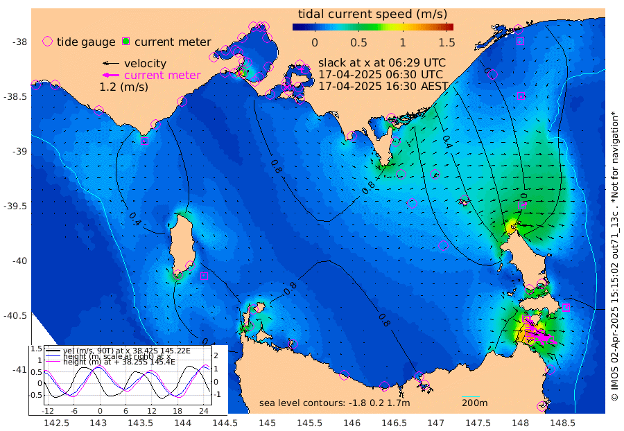 73cm/s 110T +9cm/s rms + 16cm/s 128T. CWTb1 63m 76cm/s 103T +8cm/s rms + 14cm/s 130T. C1A1 56m 126cm/s 104T +8cm/s rms + 12cm/s 12T. C1A3 27m 70cm/s 127T +0cm/s rms + 0cm/s 0T. CW1 32m 115cm/s 129T +11cm/s rms + 9cm/s 121T. CW2A1 44m 73cm/s 144T +7cm/s rms + 12cm/s 156T. CW2A2 44m 92cm/s 152T +7cm/s rms + 4cm/s 115T. CW3 33m 128cm/s 110T +9cm/s rms + 6cm/s 84T. CW4A1 30m 56cm/s 115T +5cm/s rms + 7cm/s 87T. CW4A2 36m 11cm/s 118T +9cm/s rms + 16cm/s 35T. CW6A1 37m 22cm/s 40T +6cm/s rms + 4cm/s 94T. CW6A2 31m 42cm/s 70T +4cm/s rms + 6cm/s 137T. BASS-CS91 47m 10cm/s 178T +11cm/s rms + 3cm/s -58T. BASS-CS91 70m 13cm/s -118T +10cm/s rms + 1cm/s 137T. BASS-CS91 47m 8cm/s -48T +10cm/s rms + 3cm/s 42T. BASS-CS91 53m 12cm/s -95T +8cm/s rms + 2cm/s 81T. BASS-CS91 64m 8cm/s 74T +6cm/s rms + 5cm/s 151T. BASS-UN91 115m 5cm/s 5T +4cm/s rms + 3cm/s 111T. Tas91 UNSW Mooring #1 65m 95m -11cm Lakes Entrance (Outer) 2cm Barracouta Platform 49cm Hogan Island 79cm Port Welshpool Pier 74cm Rabbit Island 67cm East Moncoeur Island 63cm Curtis Island 90cm Waratah Bay 115cm San Remo 111cm Elizabeth Island 130cm Bouchier Channel 126cm Tooradin 109cm Cowes Jetty 112cm Western Port (Stony Point) 125cm Western Port (Sandy Point) 84cm Flinders Jetty 13cm Mornington 17cm Sandringham 13cm Rosebud Jetty 15cm Hovell Pile 27cm South Channel 49cm Point Lonsdale 31cm Queenscliff 16cm West Channel Pile 57cm Barwon Heads 16cm St Leonards 19cm Point Richards (Corio Bay) 18cm Point Richards Channel 19cm Geelong 15cm Werribee 18cm Altona 18cm Wilson Spit 17cm Melbourne (Williamstown) 18cm St Kilda 64cm Lorne 54cm Apollo Bay 34cm Garden Cove 61cm Bass Pyramid 44cm Seal Bay 51cm King Island (Grassy) 87cm Stack Island 72cm Three Hummock Island 91cm Stanley 82cm Burnie 80cm Devonport 79cm Low Head 97cm Bell Bay 58cm Big River Cove 23cm Lady Barron Harbour -11cm Swan Island -28cm Eddystone Point -13cm St Helens 36cm Port Campbell 36cm Warrnambool 33cm Port Fairy