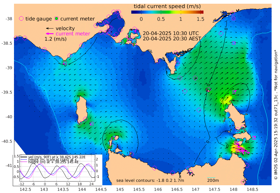 81cm/s 114T +9cm/s rms + 16cm/s 128T. CWTb1 63m 72cm/s 107T +8cm/s rms + 14cm/s 130T. C1A1 56m 95cm/s 104T +8cm/s rms + 12cm/s 12T. C1A3 27m 64cm/s 127T +0cm/s rms + 0cm/s 0T. CW1 32m 99cm/s 130T +11cm/s rms + 9cm/s 121T. CW2A1 44m 67cm/s 142T +7cm/s rms + 12cm/s 156T. CW2A2 44m 79cm/s 151T +7cm/s rms + 4cm/s 115T. CW3 33m 106cm/s 111T +9cm/s rms + 6cm/s 84T. CW4A1 30m 50cm/s 102T +5cm/s rms + 7cm/s 87T. CW4A2 36m 28cm/s 44T +9cm/s rms + 16cm/s 35T. CW6A1 37m 18cm/s 61T +6cm/s rms + 4cm/s 94T. CW6A2 31m 49cm/s 53T +4cm/s rms + 6cm/s 137T. BASS-CS91 47m 24cm/s 90T +11cm/s rms + 3cm/s -58T. BASS-CS91 70m 4cm/s 120T +10cm/s rms + 1cm/s 137T. BASS-CS91 47m 33cm/s -124T +10cm/s rms + 3cm/s 42T. BASS-CS91 53m 34cm/s -112T +8cm/s rms + 2cm/s 81T. BASS-CS91 64m 4cm/s 14T +6cm/s rms + 5cm/s 151T. BASS-UN91 115m 8cm/s -74T +4cm/s rms + 3cm/s 111T. Tas91 UNSW Mooring #1 65m 95m 0cm Lakes Entrance (Outer) 4cm Barracouta Platform -3cm Hogan Island 58cm Port Welshpool Pier 18cm Rabbit Island -1cm East Moncoeur Island -3cm Curtis Island 1cm Waratah Bay 30cm San Remo 41cm Elizabeth Island 65cm Bouchier Channel 72cm Tooradin 22cm Cowes Jetty 33cm Western Port (Stony Point) 66cm Western Port (Sandy Point) -7cm Flinders Jetty 25cm Mornington 28cm Sandringham 24cm Rosebud Jetty 25cm Hovell Pile 12cm South Channel -1cm Point Lonsdale 7cm Queenscliff 25cm West Channel Pile -9cm Barwon Heads 24cm St Leonards 29cm Point Richards (Corio Bay) 28cm Point Richards Channel 32cm Geelong 24cm Werribee 28cm Altona 30cm Wilson Spit 28cm Melbourne (Williamstown) 28cm St Kilda -9cm Lorne -6cm Apollo Bay -14cm Garden Cove -12cm Bass Pyramid 10cm Seal Bay 4cm King Island (Grassy) 31cm Stack Island 21cm Three Hummock Island 5cm Stanley -12cm Burnie -16cm Devonport -12cm Low Head 22cm Bell Bay -10cm Big River Cove -7cm Lady Barron Harbour -22cm Swan Island -15cm Eddystone Point -12cm St Helens 6cm Port Campbell 14cm Warrnambool 15cm Port Fairy