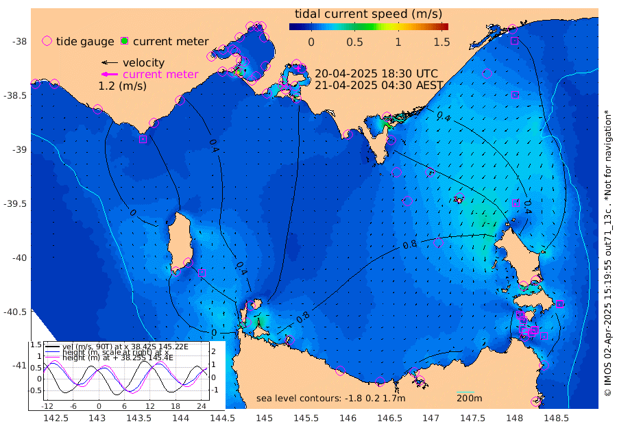 6cm/s -46T +9cm/s rms + 16cm/s 128T. CWTb1 63m 2cm/s -38T +8cm/s rms + 14cm/s 130T. C1A1 56m 22cm/s 104T +8cm/s rms + 12cm/s 12T. C1A3 27m 4cm/s 109T +0cm/s rms + 0cm/s 0T. CW1 32m 4cm/s 109T +11cm/s rms + 9cm/s 121T. CW2A1 44m 4cm/s 100T +7cm/s rms + 12cm/s 156T. CW2A2 44m 4cm/s 154T +7cm/s rms + 4cm/s 115T. CW3 33m 6cm/s 56T +9cm/s rms + 6cm/s 84T. CW4A1 30m 10cm/s 157T +5cm/s rms + 7cm/s 87T. CW4A2 36m 5cm/s -113T +9cm/s rms + 16cm/s 35T. CW6A1 37m 5cm/s -162T +6cm/s rms + 4cm/s 94T. CW6A2 31m 15cm/s -160T +4cm/s rms + 6cm/s 137T. BASS-CS91 47m 8cm/s -123T +11cm/s rms + 3cm/s -58T. BASS-CS91 70m 1cm/s -22T +10cm/s rms + 1cm/s 137T. BASS-CS91 47m 10cm/s 16T +10cm/s rms + 3cm/s 42T. BASS-CS91 53m 5cm/s 8T +8cm/s rms + 2cm/s 81T. BASS-CS91 64m 24cm/s -7T +6cm/s rms + 5cm/s 151T. BASS-UN91 115m 13cm/s -29T +4cm/s rms + 3cm/s 111T. Tas91 UNSW Mooring #1 65m 95m 17cm Lakes Entrance (Outer) 13cm Barracouta Platform 69cm Hogan Island 61cm Port Welshpool Pier 71cm Rabbit Island 77cm East Moncoeur Island 78cm Curtis Island 84cm Waratah Bay 75cm San Remo 70cm Elizabeth Island 62cm Bouchier Channel 53cm Tooradin 71cm Cowes Jetty 70cm Western Port (Stony Point) 62cm Western Port (Sandy Point) 69cm Flinders Jetty 5cm Mornington 5cm Sandringham 6cm Rosebud Jetty 6cm Hovell Pile 21cm South Channel 38cm Point Lonsdale 26cm Queenscliff 7cm West Channel Pile 45cm Barwon Heads 6cm St Leonards 6cm Point Richards (Corio Bay) 5cm Point Richards Channel 3cm Geelong 4cm Werribee 5cm Altona 4cm Wilson Spit 5cm Melbourne (Williamstown) 6cm St Kilda 44cm Lorne 30cm Apollo Bay 67cm Garden Cove 92cm Bass Pyramid 5cm Seal Bay 15cm King Island (Grassy) 46cm Stack Island 59cm Three Hummock Island 103cm Stanley 110cm Burnie 113cm Devonport 111cm Low Head 100cm Bell Bay 90cm Big River Cove 53cm Lady Barron Harbour 54cm Swan Island 31cm Eddystone Point 37cm St Helens -5cm Port Campbell -11cm Warrnambool -13cm Port Fairy