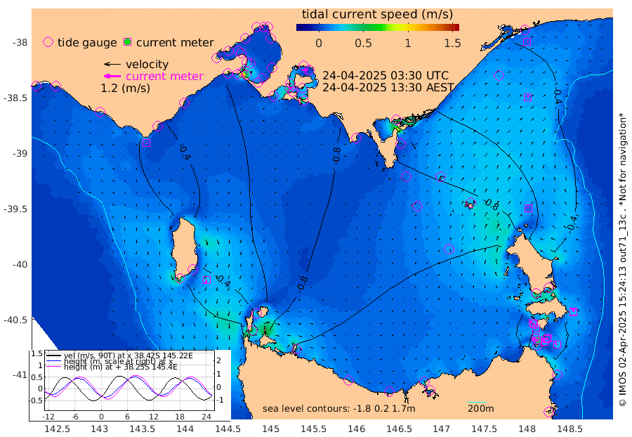 4cm/s -110T +9cm/s rms + 16cm/s 128T. CWTb1 63m 7cm/s -91T +8cm/s rms + 14cm/s 130T. C1A1 56m 46cm/s -78T +8cm/s rms + 12cm/s 12T. C1A3 27m 20cm/s -60T +0cm/s rms + 0cm/s 0T. CW1 32m 15cm/s -56T +11cm/s rms + 9cm/s 121T. CW2A1 44m 21cm/s -40T +7cm/s rms + 12cm/s 156T. CW2A2 44m 10cm/s -30T +7cm/s rms + 4cm/s 115T. CW3 33m 16cm/s -80T +9cm/s rms + 6cm/s 84T. CW4A1 30m 21cm/s -38T +5cm/s rms + 7cm/s 87T. CW4A2 36m 21cm/s -8T +9cm/s rms + 16cm/s 35T. CW6A1 37m 17cm/s 30T +6cm/s rms + 4cm/s 94T. CW6A2 31m 8cm/s -19T +4cm/s rms + 6cm/s 137T. BASS-CS91 47m 13cm/s 38T +11cm/s rms + 3cm/s -58T. BASS-CS91 70m 10cm/s 62T +10cm/s rms + 1cm/s 137T. BASS-CS91 47m 25cm/s -158T +10cm/s rms + 3cm/s 42T. BASS-CS91 53m 4cm/s 163T +8cm/s rms + 2cm/s 81T. BASS-CS91 64m 24cm/s -155T +6cm/s rms + 5cm/s 151T. BASS-UN91 115m 21cm/s 167T +4cm/s rms + 3cm/s 111T. Tas91 UNSW Mooring #1 65m 95m -32cm Lakes Entrance (Outer) -25cm Barracouta Platform -85cm Hogan Island -84cm Port Welshpool Pier -87cm Rabbit Island -90cm East Moncoeur Island -95cm Curtis Island -87cm Waratah Bay -76cm San Remo -77cm Elizabeth Island -74cm Bouchier Channel -63cm Tooradin -73cm Cowes Jetty -76cm Western Port (Stony Point) -69cm Western Port (Sandy Point) -72cm Flinders Jetty -2cm Mornington -3cm Sandringham -3cm Rosebud Jetty -2cm Hovell Pile -18cm South Channel -39cm Point Lonsdale -24cm Queenscliff -3cm West Channel Pile -49cm Barwon Heads -3cm St Leonards -2cm Point Richards (Corio Bay) -3cm Point Richards Channel 0cm Geelong 2cm Werribee -3cm Altona -2cm Wilson Spit -1cm Melbourne (Williamstown) -2cm St Kilda -50cm Lorne -35cm Apollo Bay -85cm Garden Cove -105cm Bass Pyramid -21cm Seal Bay -25cm King Island (Grassy) -58cm Stack Island -69cm Three Hummock Island -113cm Stanley -121cm Burnie -124cm Devonport -122cm Low Head -113cm Bell Bay -113cm Big River Cove -71cm Lady Barron Harbour -63cm Swan Island -37cm Eddystone Point -42cm St Helens 6cm Port Campbell -1cm Warrnambool 0cm Port Fairy