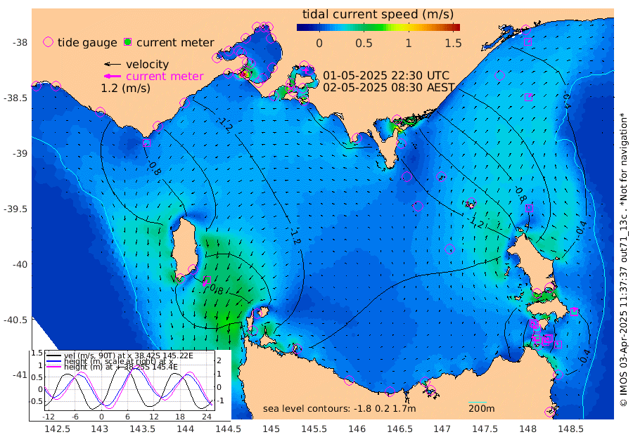 8cm/s -101T +9cm/s rms + 16cm/s 128T. CWTb1 63m 12cm/s -91T +8cm/s rms + 14cm/s 130T. C1A1 56m 37cm/s -83T +8cm/s rms + 12cm/s 12T. C1A3 27m 15cm/s -72T +0cm/s rms + 0cm/s 0T. CW1 32m 25cm/s -60T +11cm/s rms + 9cm/s 121T. CW2A1 44m 14cm/s -40T +7cm/s rms + 12cm/s 156T. CW2A2 44m 17cm/s -38T +7cm/s rms + 4cm/s 115T. CW3 33m 33cm/s -78T +9cm/s rms + 6cm/s 84T. CW4A1 30m 17cm/s -24T +5cm/s rms + 7cm/s 87T. CW4A2 36m 33cm/s 0T +9cm/s rms + 16cm/s 35T. CW6A1 37m 32cm/s 30T +6cm/s rms + 4cm/s 94T. CW6A2 31m 11cm/s -6T +4cm/s rms + 6cm/s 137T. BASS-CS91 47m 23cm/s 48T +11cm/s rms + 3cm/s -58T. BASS-CS91 70m 17cm/s 65T +10cm/s rms + 1cm/s 137T. BASS-CS91 47m 54cm/s -150T +10cm/s rms + 3cm/s 42T. BASS-CS91 53m 19cm/s -133T +8cm/s rms + 2cm/s 81T. BASS-CS91 64m 38cm/s -150T +6cm/s rms + 5cm/s 151T. BASS-UN91 115m 31cm/s 176T +4cm/s rms + 3cm/s 111T. Tas91 UNSW Mooring #1 65m 95m -32cm Lakes Entrance (Outer) -31cm Barracouta Platform -130cm Hogan Island -103cm Port Welshpool Pier -134cm Rabbit Island -146cm East Moncoeur Island -146cm Curtis Island -161cm Waratah Bay -149cm San Remo -135cm Elizabeth Island -127cm Bouchier Channel -106cm Tooradin -148cm Cowes Jetty -144cm Western Port (Stony Point) -118cm Western Port (Sandy Point) -153cm Flinders Jetty -8cm Mornington -9cm Sandringham -10cm Rosebud Jetty -10cm Hovell Pile -44cm South Channel -92cm Point Lonsdale -58cm Queenscliff -11cm West Channel Pile -108cm Barwon Heads -11cm St Leonards -9cm Point Richards (Corio Bay) -9cm Point Richards Channel -5cm Geelong -7cm Werribee -9cm Altona -8cm Wilson Spit -8cm Melbourne (Williamstown) -9cm St Kilda -127cm Lorne -104cm Apollo Bay -125cm Garden Cove -145cm Bass Pyramid -72cm Seal Bay -86cm King Island (Grassy) -84cm Stack Island -110cm Three Hummock Island -163cm Stanley -176cm Burnie -179cm Devonport -173cm Low Head -152cm Bell Bay -152cm Big River Cove -92cm Lady Barron Harbour -57cm Swan Island -26cm Eddystone Point -50cm St Helens -52cm Port Campbell -54cm Warrnambool -50cm Port Fairy