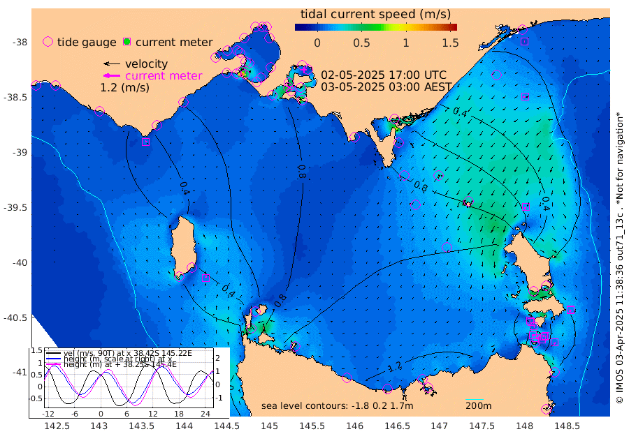 11cm/s -43T +9cm/s rms + 16cm/s 128T. CWTb1 63m 3cm/s -9T +8cm/s rms + 14cm/s 130T. C1A1 56m 23cm/s 103T +8cm/s rms + 12cm/s 12T. C1A3 27m 3cm/s 98T +0cm/s rms + 0cm/s 0T. CW1 32m 7cm/s 119T +11cm/s rms + 9cm/s 121T. CW2A1 44m 5cm/s 87T +7cm/s rms + 12cm/s 156T. CW2A2 44m 7cm/s 144T +7cm/s rms + 4cm/s 115T. CW3 33m 14cm/s 90T +9cm/s rms + 6cm/s 84T. CW4A1 30m 12cm/s 163T +5cm/s rms + 7cm/s 87T. CW4A2 36m 13cm/s -154T +9cm/s rms + 16cm/s 35T. CW6A1 37m 14cm/s -165T +6cm/s rms + 4cm/s 94T. CW6A2 31m 18cm/s -164T +4cm/s rms + 6cm/s 137T. BASS-CS91 47m 15cm/s -125T +11cm/s rms + 3cm/s -58T. BASS-CS91 70m 4cm/s -99T +10cm/s rms + 1cm/s 137T. BASS-CS91 47m 13cm/s 13T +10cm/s rms + 3cm/s 42T. BASS-CS91 53m 8cm/s 30T +8cm/s rms + 2cm/s 81T. BASS-CS91 64m 30cm/s -1T +6cm/s rms + 5cm/s 151T. BASS-UN91 115m 17cm/s -26T +4cm/s rms + 3cm/s 111T. Tas91 UNSW Mooring #1 65m 95m 17cm Lakes Entrance (Outer) 19cm Barracouta Platform 87cm Hogan Island 65cm Port Welshpool Pier 85cm Rabbit Island 98cm East Moncoeur Island 103cm Curtis Island 110cm Waratah Bay 94cm San Remo 84cm Elizabeth Island 75cm Bouchier Channel 61cm Tooradin 91cm Cowes Jetty 88cm Western Port (Stony Point) 70cm Western Port (Sandy Point) 95cm Flinders Jetty 5cm Mornington 5cm Sandringham 7cm Rosebud Jetty 6cm Hovell Pile 27cm South Channel 54cm Point Lonsdale 36cm Queenscliff 7cm West Channel Pile 63cm Barwon Heads 7cm St Leonards 5cm Point Richards (Corio Bay) 5cm Point Richards Channel 2cm Geelong 5cm Werribee 5cm Altona 4cm Wilson Spit 5cm Melbourne (Williamstown) 5cm St Kilda 68cm Lorne 46cm Apollo Bay 89cm Garden Cove 108cm Bass Pyramid 14cm Seal Bay 32cm King Island (Grassy) 54cm Stack Island 76cm Three Hummock Island 130cm Stanley 140cm Burnie 142cm Devonport 138cm Low Head 123cm Bell Bay 115cm Big River Cove 65cm Lady Barron Harbour 35cm Swan Island 11cm Eddystone Point 45cm St Helens 6cm Port Campbell -1cm Warrnambool -4cm Port Fairy