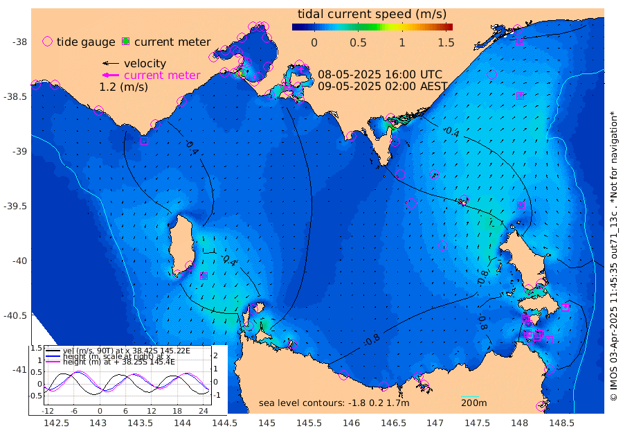 6cm/s 136T +9cm/s rms + 16cm/s 128T. CWTb1 63m 2cm/s 160T +8cm/s rms + 14cm/s 130T. C1A1 56m 24cm/s -79T +8cm/s rms + 12cm/s 12T. C1A3 27m 3cm/s -127T +0cm/s rms + 0cm/s 0T. CW1 32m 4cm/s -92T +11cm/s rms + 9cm/s 121T. CW2A1 44m 4cm/s -86T +7cm/s rms + 12cm/s 156T. CW2A2 44m 4cm/s -45T +7cm/s rms + 4cm/s 115T. CW3 33m 8cm/s -80T +9cm/s rms + 6cm/s 84T. CW4A1 30m 14cm/s -12T +5cm/s rms + 7cm/s 87T. CW4A2 36m 22cm/s 16T +9cm/s rms + 16cm/s 35T. CW6A1 37m 20cm/s 44T +6cm/s rms + 4cm/s 94T. CW6A2 31m 10cm/s -29T +4cm/s rms + 6cm/s 137T. BASS-CS91 47m 17cm/s 52T +11cm/s rms + 3cm/s -58T. BASS-CS91 70m 11cm/s 72T +10cm/s rms + 1cm/s 137T. BASS-CS91 47m 15cm/s -150T +10cm/s rms + 3cm/s 42T. BASS-CS91 53m 5cm/s -142T +8cm/s rms + 2cm/s 81T. BASS-CS91 64m 9cm/s -117T +6cm/s rms + 5cm/s 151T. BASS-UN91 115m 9cm/s -155T +4cm/s rms + 3cm/s 111T. Tas91 UNSW Mooring #1 65m 95m -13cm Lakes Entrance (Outer) -14cm Barracouta Platform -59cm Hogan Island -47cm Port Welshpool Pier -58cm Rabbit Island -61cm East Moncoeur Island -71cm Curtis Island -71cm Waratah Bay -55cm San Remo -48cm Elizabeth Island -42cm Bouchier Channel -39cm Tooradin -52cm Cowes Jetty -55cm Western Port (Stony Point) -42cm Western Port (Sandy Point) -57cm Flinders Jetty 6cm Mornington 6cm Sandringham 5cm Rosebud Jetty 5cm Hovell Pile -10cm South Channel -32cm Point Lonsdale -17cm Queenscliff 5cm West Channel Pile -45cm Barwon Heads 3cm St Leonards 6cm Point Richards (Corio Bay) 5cm Point Richards Channel 8cm Geelong 5cm Werribee 6cm Altona 6cm Wilson Spit 6cm Melbourne (Williamstown) 6cm St Kilda -45cm Lorne -35cm Apollo Bay -60cm Garden Cove -75cm Bass Pyramid -22cm Seal Bay -29cm King Island (Grassy) -39cm Stack Island -42cm Three Hummock Island -83cm Stanley -87cm Burnie -89cm Devonport -87cm Low Head -77cm Bell Bay -80cm Big River Cove -49cm Lady Barron Harbour -26cm Swan Island -2cm Eddystone Point -22cm St Helens -7cm Port Campbell -9cm Warrnambool -9cm Port Fairy