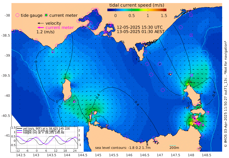 52cm/s 109T +9cm/s rms + 16cm/s 128T. CWTb1 63m 54cm/s 102T +8cm/s rms + 14cm/s 130T. C1A1 56m 99cm/s 104T +8cm/s rms + 12cm/s 12T. C1A3 27m 58cm/s 128T +0cm/s rms + 0cm/s 0T. CW1 32m 81cm/s 129T +11cm/s rms + 9cm/s 121T. CW2A1 44m 62cm/s 144T +7cm/s rms + 12cm/s 156T. CW2A2 44m 63cm/s 153T +7cm/s rms + 4cm/s 115T. CW3 33m 89cm/s 110T +9cm/s rms + 6cm/s 84T. CW4A1 30m 47cm/s 105T +5cm/s rms + 7cm/s 87T. CW4A2 36m 19cm/s 29T +9cm/s rms + 16cm/s 35T. CW6A1 37m 34cm/s 47T +6cm/s rms + 4cm/s 94T. CW6A2 31m 26cm/s 71T +4cm/s rms + 6cm/s 137T. BASS-CS91 47m 7cm/s 104T +11cm/s rms + 3cm/s -58T. BASS-CS91 70m 3cm/s 90T +10cm/s rms + 1cm/s 137T. BASS-CS91 47m 44cm/s -131T +10cm/s rms + 3cm/s 42T. BASS-CS91 53m 23cm/s -110T +8cm/s rms + 2cm/s 81T. BASS-CS91 64m 14cm/s -43T +6cm/s rms + 5cm/s 151T. BASS-UN91 115m 11cm/s -112T +4cm/s rms + 3cm/s 111T. Tas91 UNSW Mooring #1 65m 95m -22cm Lakes Entrance (Outer) -7cm Barracouta Platform 6cm Hogan Island 34cm Port Welshpool Pier 16cm Rabbit Island 17cm East Moncoeur Island 19cm Curtis Island 35cm Waratah Bay 48cm San Remo 48cm Elizabeth Island 62cm Bouchier Channel 59cm Tooradin 44cm Cowes Jetty 45cm Western Port (Stony Point) 59cm Western Port (Sandy Point) 24cm Flinders Jetty 14cm Mornington 16cm Sandringham 13cm Rosebud Jetty 14cm Hovell Pile 12cm South Channel 14cm Point Lonsdale 12cm Queenscliff 14cm West Channel Pile 13cm Barwon Heads 14cm St Leonards 16cm Point Richards (Corio Bay) 16cm Point Richards Channel 17cm Geelong 14cm Werribee 16cm Altona 17cm Wilson Spit 15cm Melbourne (Williamstown) 16cm St Kilda 11cm Lorne 0cm Apollo Bay 2cm Garden Cove 16cm Bass Pyramid -8cm Seal Bay 3cm King Island (Grassy) 45cm Stack Island 45cm Three Hummock Island 55cm Stanley 45cm Burnie 41cm Devonport 41cm Low Head 62cm Bell Bay 20cm Big River Cove -4cm Lady Barron Harbour -37cm Swan Island -39cm Eddystone Point -4cm St Helens -4cm Port Campbell -6cm Warrnambool -6cm Port Fairy