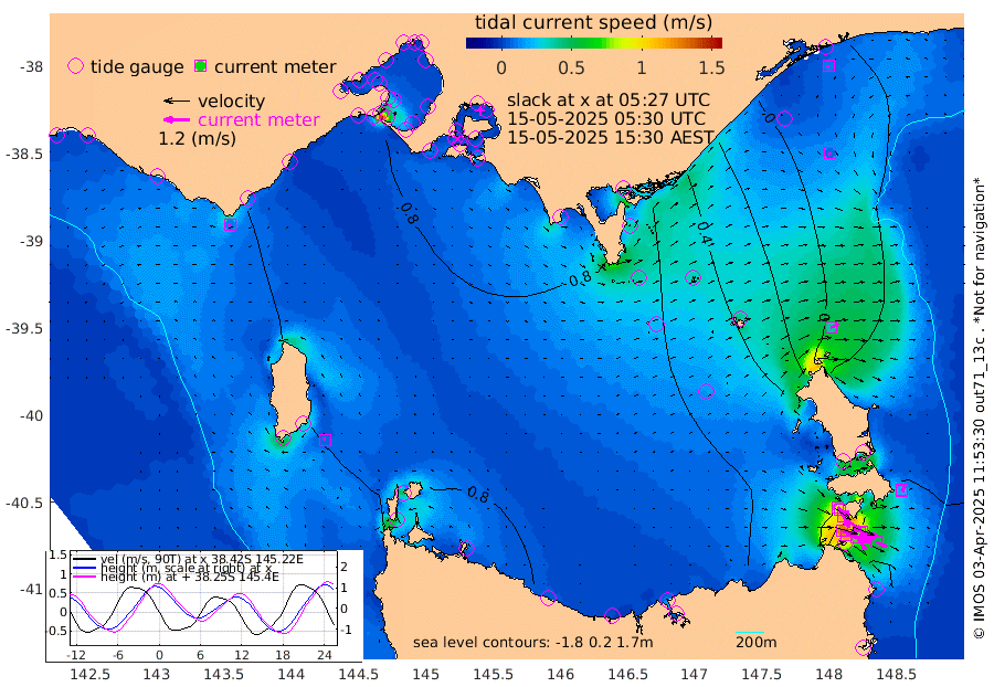 74cm/s 110T +9cm/s rms + 16cm/s 128T. CWTb1 63m 75cm/s 104T +8cm/s rms + 14cm/s 130T. C1A1 56m 120cm/s 104T +8cm/s rms + 12cm/s 12T. C1A3 27m 69cm/s 127T +0cm/s rms + 0cm/s 0T. CW1 32m 114cm/s 129T +11cm/s rms + 9cm/s 121T. CW2A1 44m 72cm/s 145T +7cm/s rms + 12cm/s 156T. CW2A2 44m 90cm/s 152T +7cm/s rms + 4cm/s 115T. CW3 33m 125cm/s 110T +9cm/s rms + 6cm/s 84T. CW4A1 30m 54cm/s 113T +5cm/s rms + 7cm/s 87T. CW4A2 36m 12cm/s 111T +9cm/s rms + 16cm/s 35T. CW6A1 37m 21cm/s 42T +6cm/s rms + 4cm/s 94T. CW6A2 31m 40cm/s 68T +4cm/s rms + 6cm/s 137T. BASS-CS91 47m 9cm/s 172T +11cm/s rms + 3cm/s -58T. BASS-CS91 70m 12cm/s -120T +10cm/s rms + 1cm/s 137T. BASS-CS91 47m 8cm/s -42T +10cm/s rms + 3cm/s 42T. BASS-CS91 53m 10cm/s -94T +8cm/s rms + 2cm/s 81T. BASS-CS91 64m 8cm/s 68T +6cm/s rms + 5cm/s 151T. BASS-UN91 115m 6cm/s -1T +4cm/s rms + 3cm/s 111T. Tas91 UNSW Mooring #1 65m 95m -12cm Lakes Entrance (Outer) 0cm Barracouta Platform 45cm Hogan Island 73cm Port Welshpool Pier 68cm Rabbit Island 63cm East Moncoeur Island 57cm Curtis Island 86cm Waratah Bay 111cm San Remo 106cm Elizabeth Island 124cm Bouchier Channel 119cm Tooradin 105cm Cowes Jetty 108cm Western Port (Stony Point) 120cm Western Port (Sandy Point) 82cm Flinders Jetty 14cm Mornington 17cm Sandringham 14cm Rosebud Jetty 15cm Hovell Pile 28cm South Channel 50cm Point Lonsdale 32cm Queenscliff 17cm West Channel Pile 60cm Barwon Heads 17cm St Leonards 19cm Point Richards (Corio Bay) 18cm Point Richards Channel 19cm Geelong 15cm Werribee 18cm Altona 19cm Wilson Spit 17cm Melbourne (Williamstown) 18cm St Kilda 68cm Lorne 60cm Apollo Bay 29cm Garden Cove 53cm Bass Pyramid 52cm Seal Bay 59cm King Island (Grassy) 82cm Stack Island 71cm Three Hummock Island 82cm Stanley 72cm Burnie 70cm Devonport 69cm Low Head 87cm Bell Bay 50cm Big River Cove 18cm Lady Barron Harbour -17cm Swan Island -30cm Eddystone Point -14cm St Helens 45cm Port Campbell 46cm Warrnambool 44cm Port Fairy
