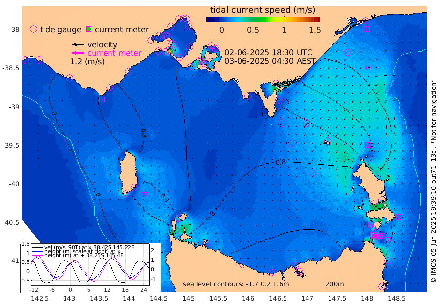 6cm/s 45T +9cm/s rms + 16cm/s 128T. CWTb1 63m 11cm/s 87T +8cm/s rms + 14cm/s 130T. C1A1 56m 47cm/s 105T +8cm/s rms + 12cm/s 12T. C1A3 27m 15cm/s 126T +0cm/s rms + 0cm/s 0T. CW1 32m 24cm/s 127T +11cm/s rms + 9cm/s 121T. CW2A1 44m 14cm/s 124T +7cm/s rms + 12cm/s 156T. CW2A2 44m 21cm/s 148T +7cm/s rms + 4cm/s 115T. CW3 33m 32cm/s 103T +9cm/s rms + 6cm/s 84T. CW4A1 30m 19cm/s 141T +5cm/s rms + 7cm/s 87T. CW4A2 36m 10cm/s -155T +9cm/s rms + 16cm/s 35T. CW6A1 37m 2cm/s 73T +6cm/s rms + 4cm/s 94T. CW6A2 31m 14cm/s 159T +4cm/s rms + 6cm/s 137T. BASS-CS91 47m 16cm/s -125T +11cm/s rms + 3cm/s -58T. BASS-CS91 70m 7cm/s -102T +10cm/s rms + 1cm/s 137T. BASS-CS91 47m 11cm/s 7T +10cm/s rms + 3cm/s 42T. BASS-CS91 53m 6cm/s 26T +8cm/s rms + 2cm/s 81T. BASS-CS91 64m 20cm/s 4T +6cm/s rms + 5cm/s 151T. BASS-UN91 115m 12cm/s -20T +4cm/s rms + 3cm/s 111T. Tas91 UNSW Mooring #1 65m 95m 8cm Lakes Entrance (Outer) 16cm Barracouta Platform 68cm Hogan Island 55cm Port Welshpool Pier 71cm Rabbit Island 78cm East Moncoeur Island 85cm Curtis Island 89cm Waratah Bay 76cm San Remo 69cm Elizabeth Island 66cm Bouchier Channel 58cm Tooradin 75cm Cowes Jetty 74cm Western Port (Stony Point) 61cm Western Port (Sandy Point) 73cm Flinders Jetty -1cm Mornington 1cm Sandringham 1cm Rosebud Jetty 1cm Hovell Pile 18cm South Channel 40cm Point Lonsdale 25cm Queenscliff 2cm West Channel Pile 50cm Barwon Heads 1cm St Leonards 1cm Point Richards (Corio Bay) 0cm Point Richards Channel -2cm Geelong 1cm Werribee 0cm Altona -2cm Wilson Spit 0cm Melbourne (Williamstown) 0cm St Kilda 52cm Lorne 33cm Apollo Bay 71cm Garden Cove 90cm Bass Pyramid 9cm Seal Bay 22cm King Island (Grassy) 53cm Stack Island 61cm Three Hummock Island 111cm Stanley 117cm Burnie 118cm Devonport 115cm Low Head 106cm Bell Bay 96cm Big River Cove 54cm Lady Barron Harbour 26cm Swan Island 1cm Eddystone Point 28cm St Helens -2cm Port Campbell -6cm Warrnambool -6cm Port Fairy
