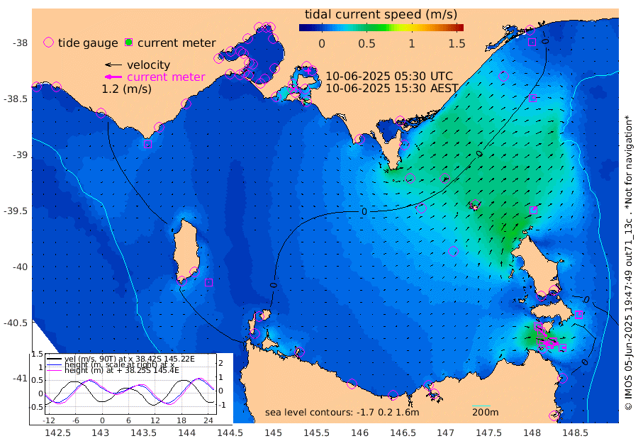 46cm/s 115T +9cm/s rms + 16cm/s 128T. CWTb1 63m 39cm/s 108T +8cm/s rms + 14cm/s 130T. C1A1 56m 40cm/s 106T +8cm/s rms + 12cm/s 12T. C1A3 27m 31cm/s 127T +0cm/s rms + 0cm/s 0T. CW1 32m 54cm/s 131T +11cm/s rms + 9cm/s 121T. CW2A1 44m 29cm/s 143T +7cm/s rms + 12cm/s 156T. CW2A2 44m 42cm/s 151T +7cm/s rms + 4cm/s 115T. CW3 33m 55cm/s 108T +9cm/s rms + 6cm/s 84T. CW4A1 30m 22cm/s 88T +5cm/s rms + 7cm/s 87T. CW4A2 36m 18cm/s 29T +9cm/s rms + 16cm/s 35T. CW6A1 37m 16cm/s 57T +6cm/s rms + 4cm/s 94T. CW6A2 31m 26cm/s 43T +4cm/s rms + 6cm/s 137T. BASS-CS91 47m 14cm/s 76T +11cm/s rms + 3cm/s -58T. BASS-CS91 70m 4cm/s 88T +10cm/s rms + 1cm/s 137T. BASS-CS91 47m 2cm/s -94T +10cm/s rms + 3cm/s 42T. BASS-CS91 53m 7cm/s -113T +8cm/s rms + 2cm/s 81T. BASS-CS91 64m 3cm/s 47T +6cm/s rms + 5cm/s 151T. BASS-UN91 115m 3cm/s -29T +4cm/s rms + 3cm/s 111T. Tas91 UNSW Mooring #1 65m 95m 3cm Lakes Entrance (Outer) 1cm Barracouta Platform 0cm Hogan Island 16cm Port Welshpool Pier 10cm Rabbit Island 2cm East Moncoeur Island -9cm Curtis Island -4cm Waratah Bay 17cm San Remo 22cm Elizabeth Island 32cm Bouchier Channel 36cm Tooradin 18cm Cowes Jetty 19cm Western Port (Stony Point) 32cm Western Port (Sandy Point) 3cm Flinders Jetty 19cm Mornington 19cm Sandringham 18cm Rosebud Jetty 18cm Hovell Pile 12cm South Channel 8cm Point Lonsdale 10cm Queenscliff 19cm West Channel Pile 2cm Barwon Heads 19cm St Leonards 21cm Point Richards (Corio Bay) 20cm Point Richards Channel 22cm Geelong 21cm Werribee 19cm Altona 21cm Wilson Spit 20cm Melbourne (Williamstown) 21cm St Kilda 8cm Lorne 14cm Apollo Bay -11cm Garden Cove -24cm Bass Pyramid 25cm Seal Bay 18cm King Island (Grassy) -4cm Stack Island -3cm Three Hummock Island -28cm Stanley -33cm Burnie -35cm Devonport -34cm Low Head -21cm Bell Bay -23cm Big River Cove -13cm Lady Barron Harbour -31cm Swan Island -9cm Eddystone Point -14cm St Helens 25cm Port Campbell 27cm Warrnambool 27cm Port Fairy