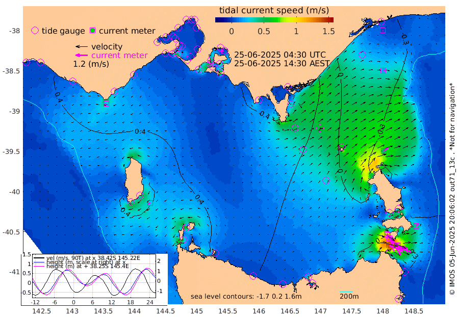 99cm/s 113T +9cm/s rms + 16cm/s 128T. CWTb1 63m 88cm/s 106T +8cm/s rms + 14cm/s 130T. C1A1 56m 134cm/s 104T +8cm/s rms + 12cm/s 12T. C1A3 27m 87cm/s 127T +0cm/s rms + 0cm/s 0T. CW1 32m 126cm/s 130T +11cm/s rms + 9cm/s 121T. CW2A1 44m 88cm/s 143T +7cm/s rms + 12cm/s 156T. CW2A2 44m 99cm/s 151T +7cm/s rms + 4cm/s 115T. CW3 33m 134cm/s 109T +9cm/s rms + 6cm/s 84T. CW4A1 30m 66cm/s 103T +5cm/s rms + 7cm/s 87T. CW4A2 36m 33cm/s 39T +9cm/s rms + 16cm/s 35T. CW6A1 37m 39cm/s 49T +6cm/s rms + 4cm/s 94T. CW6A2 31m 51cm/s 55T +4cm/s rms + 6cm/s 137T. BASS-CS91 47m 19cm/s 90T +11cm/s rms + 3cm/s -58T. BASS-CS91 70m 3cm/s 166T +10cm/s rms + 1cm/s 137T. BASS-CS91 47m 25cm/s -122T +10cm/s rms + 3cm/s 42T. BASS-CS91 53m 26cm/s -110T +8cm/s rms + 2cm/s 81T. BASS-CS91 64m 5cm/s 6T +6cm/s rms + 5cm/s 151T. BASS-UN91 115m 7cm/s -78T +4cm/s rms + 3cm/s 111T. Tas91 UNSW Mooring #1 65m 95m -16cm Lakes Entrance (Outer) -7cm Barracouta Platform 5cm Hogan Island 54cm Port Welshpool Pier 27cm Rabbit Island 17cm East Moncoeur Island 2cm Curtis Island 25cm Waratah Bay 64cm San Remo 71cm Elizabeth Island 90cm Bouchier Channel 91cm Tooradin 59cm Cowes Jetty 62cm Western Port (Stony Point) 92cm Western Port (Sandy Point) 28cm Flinders Jetty 25cm Mornington 26cm Sandringham 23cm Rosebud Jetty 24cm Hovell Pile 21cm South Channel 22cm Point Lonsdale 19cm Queenscliff 24cm West Channel Pile 21cm Barwon Heads 25cm St Leonards 28cm Point Richards (Corio Bay) 28cm Point Richards Channel 30cm Geelong 20cm Werribee 27cm Altona 29cm Wilson Spit 26cm Melbourne (Williamstown) 27cm St Kilda 28cm Lorne 31cm Apollo Bay -16cm Garden Cove -7cm Bass Pyramid 44cm Seal Bay 39cm King Island (Grassy) 52cm Stack Island 43cm Three Hummock Island 18cm Stanley 0cm Burnie -5cm Devonport -3cm Low Head 30cm Bell Bay -8cm Big River Cove -17cm Lady Barron Harbour -35cm Swan Island -24cm Eddystone Point -25cm St Helens 30cm Port Campbell 47cm Warrnambool 46cm Port Fairy