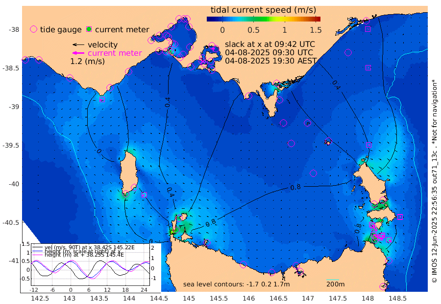 20cm/s 100T +9cm/s rms + 16cm/s 128T. CWTb1 63m 25cm/s 99T +8cm/s rms + 14cm/s 130T. C1A1 56m 63cm/s 106T +8cm/s rms + 12cm/s 12T. C1A3 27m 32cm/s 129T +0cm/s rms + 0cm/s 0T. CW1 32m 39cm/s 129T +11cm/s rms + 9cm/s 121T. CW2A1 44m 32cm/s 135T +7cm/s rms + 12cm/s 156T. CW2A2 44m 33cm/s 150T +7cm/s rms + 4cm/s 115T. CW3 33m 47cm/s 110T +9cm/s rms + 6cm/s 84T. CW4A1 30m 31cm/s 122T +5cm/s rms + 7cm/s 87T. CW4A2 36m 8cm/s 25T +9cm/s rms + 16cm/s 35T. CW6A1 37m 10cm/s 60T +6cm/s rms + 4cm/s 94T. CW6A2 31m 12cm/s 99T +4cm/s rms + 6cm/s 137T. BASS-CS91 47m 5cm/s 132T +11cm/s rms + 3cm/s -58T. BASS-CS91 70m 3cm/s 70T +10cm/s rms + 1cm/s 137T. BASS-CS91 47m 24cm/s -122T +10cm/s rms + 3cm/s 42T. BASS-CS91 53m 20cm/s -105T +8cm/s rms + 2cm/s 81T. BASS-CS91 64m 19cm/s -16T +6cm/s rms + 5cm/s 151T. BASS-UN91 115m 12cm/s -54T +4cm/s rms + 3cm/s 111T. Tas91 UNSW Mooring #1 65m 95m 18cm Lakes Entrance (Outer) 15cm Barracouta Platform 59cm Hogan Island 84cm Port Welshpool Pier 70cm Rabbit Island 64cm East Moncoeur Island 71cm Curtis Island 75cm Waratah Bay 73cm San Remo 75cm Elizabeth Island 80cm Bouchier Channel 77cm Tooradin 67cm Cowes Jetty 72cm Western Port (Stony Point) 79cm Western Port (Sandy Point) 51cm Flinders Jetty 18cm Mornington 18cm Sandringham 17cm Rosebud Jetty 17cm Hovell Pile 21cm South Channel 29cm Point Lonsdale 24cm Queenscliff 18cm West Channel Pile 32cm Barwon Heads 18cm St Leonards 19cm Point Richards (Corio Bay) 19cm Point Richards Channel 18cm Geelong 15cm Werribee 18cm Altona 19cm Wilson Spit 17cm Melbourne (Williamstown) 18cm St Kilda 27cm Lorne 13cm Apollo Bay 55cm Garden Cove 79cm Bass Pyramid -2cm Seal Bay 4cm King Island (Grassy) 46cm Stack Island 56cm Three Hummock Island 96cm Stanley 95cm Burnie 95cm Devonport 96cm Low Head 102cm Bell Bay 78cm Big River Cove 47cm Lady Barron Harbour 33cm Swan Island 13cm Eddystone Point 31cm St Helens -11cm Port Campbell -13cm Warrnambool -14cm Port Fairy