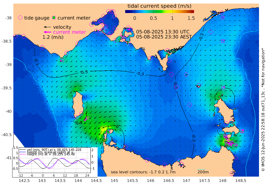 47cm/s 113T +9cm/s rms + 16cm/s 128T. CWTb1 63m 42cm/s 106T +8cm/s rms + 14cm/s 130T. C1A1 56m 65cm/s 104T +8cm/s rms + 12cm/s 12T. C1A3 27m 43cm/s 129T +0cm/s rms + 0cm/s 0T. CW1 32m 59cm/s 130T +11cm/s rms + 9cm/s 121T. CW2A1 44m 47cm/s 143T +7cm/s rms + 12cm/s 156T. CW2A2 44m 46cm/s 153T +7cm/s rms + 4cm/s 115T. CW3 33m 63cm/s 111T +9cm/s rms + 6cm/s 84T. CW4A1 30m 39cm/s 93T +5cm/s rms + 7cm/s 87T. CW4A2 36m 36cm/s 12T +9cm/s rms + 16cm/s 35T. CW6A1 37m 42cm/s 45T +6cm/s rms + 4cm/s 94T. CW6A2 31m 27cm/s 60T +4cm/s rms + 6cm/s 137T. BASS-CS91 47m 16cm/s 69T +11cm/s rms + 3cm/s -58T. BASS-CS91 70m 12cm/s 70T +10cm/s rms + 1cm/s 137T. BASS-CS91 47m 73cm/s -137T +10cm/s rms + 3cm/s 42T. BASS-CS91 53m 33cm/s -117T +8cm/s rms + 2cm/s 81T. BASS-CS91 64m 19cm/s -107T +6cm/s rms + 5cm/s 151T. BASS-UN91 115m 21cm/s -155T +4cm/s rms + 3cm/s 111T. Tas91 UNSW Mooring #1 65m 95m -24cm Lakes Entrance (Outer) -14cm Barracouta Platform -48cm Hogan Island 0cm Port Welshpool Pier -43cm Rabbit Island -48cm East Moncoeur Island -45cm Curtis Island -46cm Waratah Bay -30cm San Remo -21cm Elizabeth Island -3cm Bouchier Channel 7cm Tooradin -35cm Cowes Jetty -31cm Western Port (Stony Point) -1cm Western Port (Sandy Point) -58cm Flinders Jetty 14cm Mornington 15cm Sandringham 12cm Rosebud Jetty 13cm Hovell Pile -8cm South Channel -33cm Point Lonsdale -15cm Queenscliff 13cm West Channel Pile -43cm Barwon Heads 11cm St Leonards 16cm Point Richards (Corio Bay) 15cm Point Richards Channel 19cm Geelong 15cm Werribee 15cm Altona 16cm Wilson Spit 16cm Melbourne (Williamstown) 16cm St Kilda -56cm Lorne -54cm Apollo Bay -49cm Garden Cove -50cm Bass Pyramid -41cm Seal Bay -40cm King Island (Grassy) 3cm Stack Island -7cm Three Hummock Island -21cm Stanley -37cm Burnie -41cm Devonport -38cm Low Head -7cm Bell Bay -44cm Big River Cove -35cm Lady Barron Harbour -66cm Swan Island -52cm Eddystone Point -15cm St Helens -34cm Port Campbell -33cm Warrnambool -30cm Port Fairy