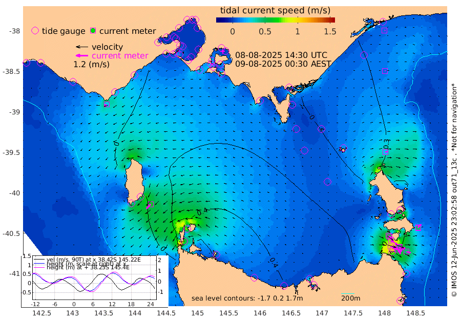 49cm/s 108T +9cm/s rms + 16cm/s 128T. CWTb1 63m 52cm/s 102T +8cm/s rms + 14cm/s 130T. C1A1 56m 97cm/s 105T +8cm/s rms + 12cm/s 12T. C1A3 27m 52cm/s 131T +0cm/s rms + 0cm/s 0T. CW1 32m 79cm/s 129T +11cm/s rms + 9cm/s 121T. CW2A1 44m 55cm/s 143T +7cm/s rms + 12cm/s 156T. CW2A2 44m 62cm/s 152T +7cm/s rms + 4cm/s 115T. CW3 33m 89cm/s 110T +9cm/s rms + 6cm/s 84T. CW4A1 30m 44cm/s 105T +5cm/s rms + 7cm/s 87T. CW4A2 36m 23cm/s 10T +9cm/s rms + 16cm/s 35T. CW6A1 37m 45cm/s 42T +6cm/s rms + 4cm/s 94T. CW6A2 31m 26cm/s 76T +4cm/s rms + 6cm/s 137T. BASS-CS91 47m 9cm/s 83T +11cm/s rms + 3cm/s -58T. BASS-CS91 70m 7cm/s 69T +10cm/s rms + 1cm/s 137T. BASS-CS91 47m 61cm/s -134T +10cm/s rms + 3cm/s 42T. BASS-CS91 53m 29cm/s -112T +8cm/s rms + 2cm/s 81T. BASS-CS91 64m 17cm/s -74T +6cm/s rms + 5cm/s 151T. BASS-UN91 115m 16cm/s -144T +4cm/s rms + 3cm/s 111T. Tas91 UNSW Mooring #1 65m 95m -27cm Lakes Entrance (Outer) -15cm Barracouta Platform -13cm Hogan Island 32cm Port Welshpool Pier -3cm Rabbit Island -4cm East Moncoeur Island -3cm Curtis Island 14cm Waratah Bay 24cm San Remo 25cm Elizabeth Island 37cm Bouchier Channel 38cm Tooradin 13cm Cowes Jetty 19cm Western Port (Stony Point) 41cm Western Port (Sandy Point) -6cm Flinders Jetty 12cm Mornington 13cm Sandringham 13cm Rosebud Jetty 14cm Hovell Pile 7cm South Channel -1cm Point Lonsdale 4cm Queenscliff 14cm West Channel Pile -3cm Barwon Heads 11cm St Leonards 16cm Point Richards (Corio Bay) 14cm Point Richards Channel 17cm Geelong 13cm Werribee 14cm Altona 14cm Wilson Spit 15cm Melbourne (Williamstown) 16cm St Kilda -12cm Lorne -15cm Apollo Bay -17cm Garden Cove 5cm Bass Pyramid -21cm Seal Bay -12cm King Island (Grassy) 47cm Stack Island 40cm Three Hummock Island 48cm Stanley 32cm Burnie 28cm Devonport 30cm Low Head 58cm Bell Bay 4cm Big River Cove -9cm Lady Barron Harbour -29cm Swan Island -37cm Eddystone Point -1cm St Helens -15cm Port Campbell -15cm Warrnambool -14cm Port Fairy