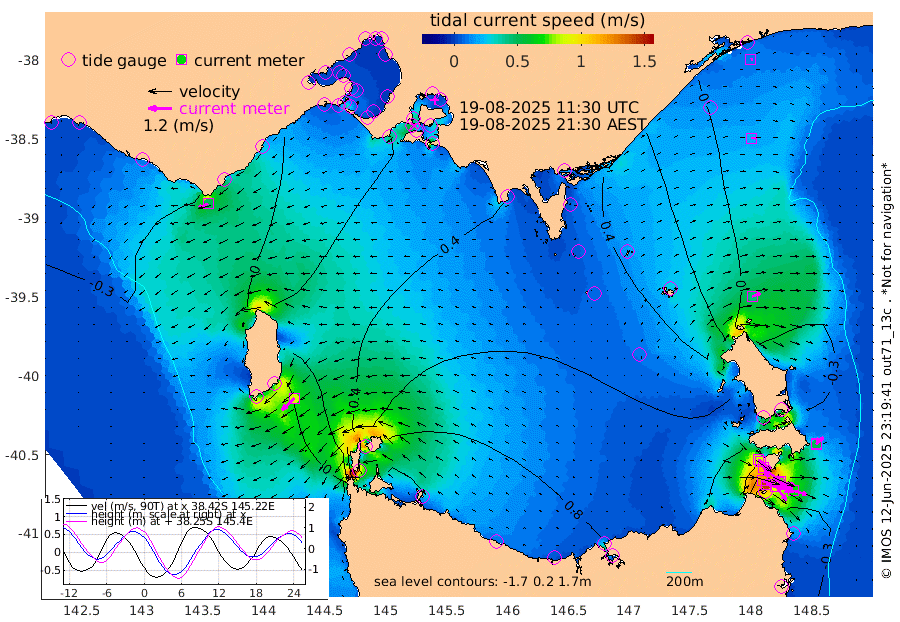 76cm/s 111T +9cm/s rms + 16cm/s 128T. CWTb1 63m 76cm/s 104T +8cm/s rms + 14cm/s 130T. C1A1 56m 143cm/s 105T +8cm/s rms + 12cm/s 12T. C1A3 27m 83cm/s 128T +0cm/s rms + 0cm/s 0T. CW1 32m 113cm/s 130T +11cm/s rms + 9cm/s 121T. CW2A1 44m 91cm/s 143T +7cm/s rms + 12cm/s 156T. CW2A2 44m 87cm/s 153T +7cm/s rms + 4cm/s 115T. CW3 33m 121cm/s 110T +9cm/s rms + 6cm/s 84T. CW4A1 30m 71cm/s 105T +5cm/s rms + 7cm/s 87T. CW4A2 36m 31cm/s 19T +9cm/s rms + 16cm/s 35T. CW6A1 37m 52cm/s 47T +6cm/s rms + 4cm/s 94T. CW6A2 31m 45cm/s 69T +4cm/s rms + 6cm/s 137T. BASS-CS91 47m 20cm/s 90T +11cm/s rms + 3cm/s -58T. BASS-CS91 70m 11cm/s 74T +10cm/s rms + 1cm/s 137T. BASS-CS91 47m 87cm/s -133T +10cm/s rms + 3cm/s 42T. BASS-CS91 53m 52cm/s -112T +8cm/s rms + 2cm/s 81T. BASS-CS91 64m 24cm/s -58T +6cm/s rms + 5cm/s 151T. BASS-UN91 115m 20cm/s -126T +4cm/s rms + 3cm/s 111T. Tas91 UNSW Mooring #1 65m 95m -7cm Lakes Entrance (Outer) -3cm Barracouta Platform 25cm Hogan Island 94cm Port Welshpool Pier 36cm Rabbit Island 32cm East Moncoeur Island 30cm Curtis Island 35cm Waratah Bay 57cm San Remo 69cm Elizabeth Island 87cm Bouchier Channel 90cm Tooradin 42cm Cowes Jetty 51cm Western Port (Stony Point) 93cm Western Port (Sandy Point) 5cm Flinders Jetty 28cm Mornington 30cm Sandringham 28cm Rosebud Jetty 28cm Hovell Pile 15cm South Channel 0cm Point Lonsdale 10cm Queenscliff 28cm West Channel Pile -4cm Barwon Heads 27cm St Leonards 32cm Point Richards (Corio Bay) 30cm Point Richards Channel 34cm Geelong 26cm Werribee 30cm Altona 33cm Wilson Spit 30cm Melbourne (Williamstown) 31cm St Kilda -20cm Lorne -29cm Apollo Bay 14cm Garden Cove 36cm Bass Pyramid -28cm Seal Bay -21cm King Island (Grassy) 74cm Stack Island 66cm Three Hummock Island 85cm Stanley 70cm Burnie 67cm Devonport 70cm Low Head 106cm Bell Bay 50cm Big River Cove 17cm Lady Barron Harbour -27cm Swan Island -30cm Eddystone Point 15cm St Helens -44cm Port Campbell -37cm Warrnambool -37cm Port Fairy