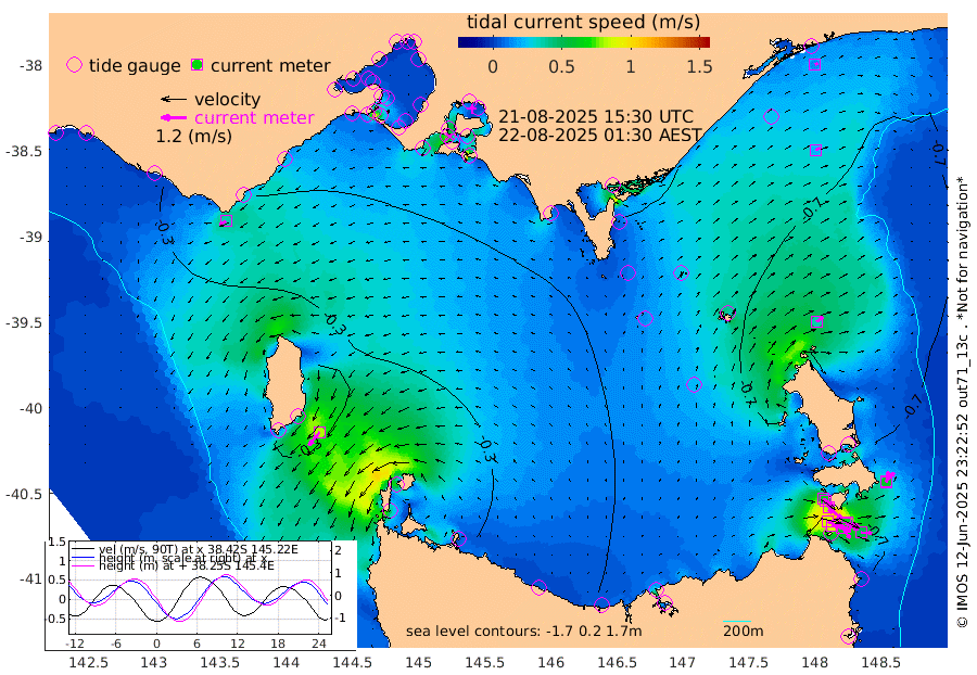 66cm/s 114T +9cm/s rms + 16cm/s 128T. CWTb1 63m 58cm/s 107T +8cm/s rms + 14cm/s 130T. C1A1 56m 91cm/s 106T +8cm/s rms + 12cm/s 12T. C1A3 27m 56cm/s 128T +0cm/s rms + 0cm/s 0T. CW1 32m 82cm/s 130T +11cm/s rms + 9cm/s 121T. CW2A1 44m 62cm/s 142T +7cm/s rms + 12cm/s 156T. CW2A2 44m 63cm/s 152T +7cm/s rms + 4cm/s 115T. CW3 33m 86cm/s 110T +9cm/s rms + 6cm/s 84T. CW4A1 30m 50cm/s 93T +5cm/s rms + 7cm/s 87T. CW4A2 36m 48cm/s 10T +9cm/s rms + 16cm/s 35T. CW6A1 37m 59cm/s 42T +6cm/s rms + 4cm/s 94T. CW6A2 31m 37cm/s 57T +4cm/s rms + 6cm/s 137T. BASS-CS91 47m 22cm/s 68T +11cm/s rms + 3cm/s -58T. BASS-CS91 70m 13cm/s 70T +10cm/s rms + 1cm/s 137T. BASS-CS91 47m 80cm/s -140T +10cm/s rms + 3cm/s 42T. BASS-CS91 53m 36cm/s -117T +8cm/s rms + 2cm/s 81T. BASS-CS91 64m 27cm/s -116T +6cm/s rms + 5cm/s 151T. BASS-UN91 115m 29cm/s -164T +4cm/s rms + 3cm/s 111T. Tas91 UNSW Mooring #1 65m 95m -48cm Lakes Entrance (Outer) -31cm Barracouta Platform -72cm Hogan Island -24cm Port Welshpool Pier -67cm Rabbit Island -69cm East Moncoeur Island -78cm Curtis Island -65cm Waratah Bay -37cm San Remo -28cm Elizabeth Island -15cm Bouchier Channel -5cm Tooradin -45cm Cowes Jetty -41cm Western Port (Stony Point) -5cm Western Port (Sandy Point) -68cm Flinders Jetty 14cm Mornington 15cm Sandringham 14cm Rosebud Jetty 13cm Hovell Pile -10cm South Channel -39cm Point Lonsdale -19cm Queenscliff 12cm West Channel Pile -51cm Barwon Heads 12cm St Leonards 16cm Point Richards (Corio Bay) 15cm Point Richards Channel 19cm Geelong 12cm Werribee 15cm Altona 17cm Wilson Spit 16cm Melbourne (Williamstown) 16cm St Kilda -61cm Lorne -54cm Apollo Bay -81cm Garden Cove -80cm Bass Pyramid -39cm Seal Bay -40cm King Island (Grassy) 5cm Stack Island -10cm Three Hummock Island -44cm Stanley -66cm Burnie -72cm Devonport -68cm Low Head -30cm Bell Bay -77cm Big River Cove -63cm Lady Barron Harbour -81cm Swan Island -59cm Eddystone Point -34cm St Helens -31cm Port Campbell -25cm Warrnambool -22cm Port Fairy