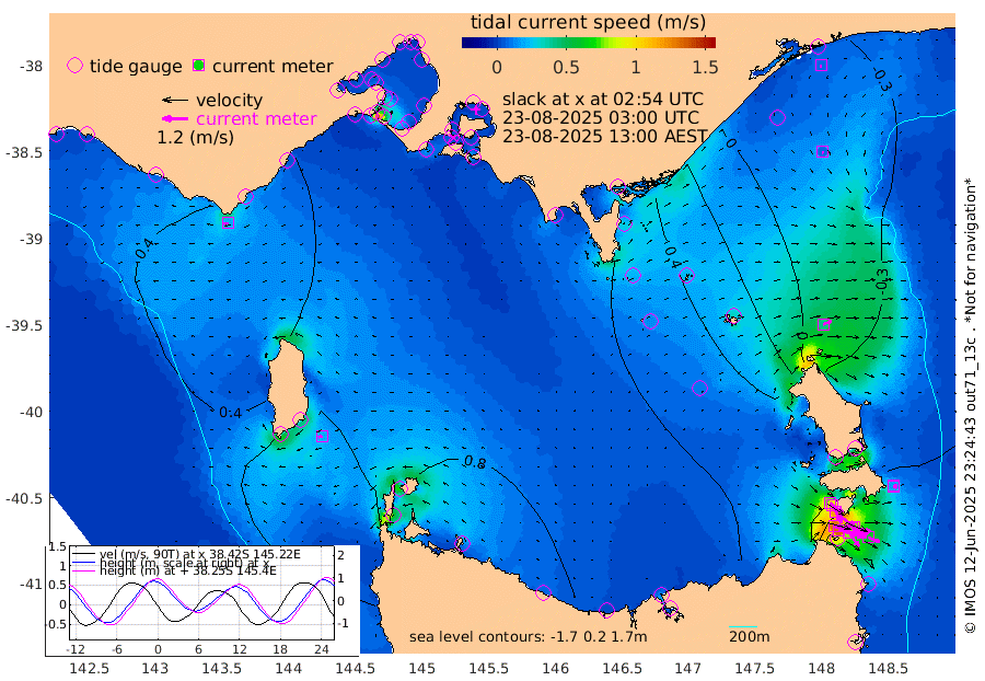 79cm/s 111T +9cm/s rms + 16cm/s 128T. CWTb1 63m 78cm/s 104T +8cm/s rms + 14cm/s 130T. C1A1 56m 133cm/s 104T +8cm/s rms + 12cm/s 12T. C1A3 27m 75cm/s 127T +0cm/s rms + 0cm/s 0T. CW1 32m 119cm/s 129T +11cm/s rms + 9cm/s 121T. CW2A1 44m 79cm/s 145T +7cm/s rms + 12cm/s 156T. CW2A2 44m 92cm/s 152T +7cm/s rms + 4cm/s 115T. CW3 33m 128cm/s 109T +9cm/s rms + 6cm/s 84T. CW4A1 30m 58cm/s 112T +5cm/s rms + 7cm/s 87T. CW4A2 36m 16cm/s 125T +9cm/s rms + 16cm/s 35T. CW6A1 37m 18cm/s 68T +6cm/s rms + 4cm/s 94T. CW6A2 31m 41cm/s 65T +4cm/s rms + 6cm/s 137T. BASS-CS91 47m 9cm/s 146T +11cm/s rms + 3cm/s -58T. BASS-CS91 70m 9cm/s -129T +10cm/s rms + 1cm/s 137T. BASS-CS91 47m 19cm/s -106T +10cm/s rms + 3cm/s 42T. BASS-CS91 53m 20cm/s -105T +8cm/s rms + 2cm/s 81T. BASS-CS91 64m 10cm/s 40T +6cm/s rms + 5cm/s 151T. BASS-UN91 115m 7cm/s -35T +4cm/s rms + 3cm/s 111T. Tas91 UNSW Mooring #1 65m 95m -20cm Lakes Entrance (Outer) -9cm Barracouta Platform 35cm Hogan Island 60cm Port Welshpool Pier 46cm Rabbit Island 51cm East Moncoeur Island 44cm Curtis Island 67cm Waratah Bay 85cm San Remo 80cm Elizabeth Island 96cm Bouchier Channel 88cm Tooradin 78cm Cowes Jetty 83cm Western Port (Stony Point) 92cm Western Port (Sandy Point) 62cm Flinders Jetty 10cm Mornington 9cm Sandringham 8cm Rosebud Jetty 10cm Hovell Pile 20cm South Channel 39cm Point Lonsdale 23cm Queenscliff 11cm West Channel Pile 50cm Barwon Heads 11cm St Leonards 12cm Point Richards (Corio Bay) 13cm Point Richards Channel 12cm Geelong 8cm Werribee 11cm Altona 13cm Wilson Spit 11cm Melbourne (Williamstown) 12cm St Kilda 55cm Lorne 49cm Apollo Bay 23cm Garden Cove 40cm Bass Pyramid 43cm Seal Bay 50cm King Island (Grassy) 88cm Stack Island 77cm Three Hummock Island 82cm Stanley 72cm Burnie 68cm Devonport 67cm Low Head 86cm Bell Bay 49cm Big River Cove 10cm Lady Barron Harbour -20cm Swan Island -27cm Eddystone Point -10cm St Helens 32cm Port Campbell 39cm Warrnambool 40cm Port Fairy