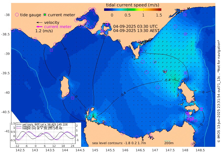 19cm/s 119T +9cm/s rms + 16cm/s 128T. CWTb1 63m 15cm/s 111T +8cm/s rms + 14cm/s 130T. C1A1 56m 8cm/s -86T +8cm/s rms + 12cm/s 12T. C1A3 27m 12cm/s 131T +0cm/s rms + 0cm/s 0T. CW1 32m 16cm/s 136T +11cm/s rms + 9cm/s 121T. CW2A1 44m 11cm/s 142T +7cm/s rms + 12cm/s 156T. CW2A2 44m 12cm/s 154T +7cm/s rms + 4cm/s 115T. CW3 33m 14cm/s 112T +9cm/s rms + 6cm/s 84T. CW4A1 30m 10cm/s 49T +5cm/s rms + 7cm/s 87T. CW4A2 36m 17cm/s 32T +9cm/s rms + 16cm/s 35T. CW6A1 37m 7cm/s 82T +6cm/s rms + 4cm/s 94T. CW6A2 31m 13cm/s -1T +4cm/s rms + 6cm/s 137T. BASS-CS91 47m 16cm/s 67T +11cm/s rms + 3cm/s -58T. BASS-CS91 70m 7cm/s 82T +10cm/s rms + 1cm/s 137T. BASS-CS91 47m 4cm/s 25T +10cm/s rms + 3cm/s 42T. BASS-CS91 53m 2cm/s -141T +8cm/s rms + 2cm/s 81T. BASS-CS91 64m 7cm/s 13T +6cm/s rms + 5cm/s 151T. BASS-UN91 115m 7cm/s -42T +4cm/s rms + 3cm/s 111T. Tas91 UNSW Mooring #1 65m 95m -1cm Lakes Entrance (Outer) 0cm Barracouta Platform -26cm Hogan Island -25cm Port Welshpool Pier -25cm Rabbit Island -28cm East Moncoeur Island -35cm Curtis Island -31cm Waratah Bay -23cm San Remo -22cm Elizabeth Island -19cm Bouchier Channel -18cm Tooradin -21cm Cowes Jetty -20cm Western Port (Stony Point) -20cm Western Port (Sandy Point) -17cm Flinders Jetty 11cm Mornington 11cm Sandringham 11cm Rosebud Jetty 10cm Hovell Pile 5cm South Channel -2cm Point Lonsdale 3cm Queenscliff 11cm West Channel Pile -11cm Barwon Heads 10cm St Leonards 11cm Point Richards (Corio Bay) 10cm Point Richards Channel 12cm Geelong 12cm Werribee 11cm Altona 11cm Wilson Spit 11cm Melbourne (Williamstown) 11cm St Kilda 0cm Lorne 9cm Apollo Bay -28cm Garden Cove -51cm Bass Pyramid 16cm Seal Bay 13cm King Island (Grassy) -31cm Stack Island -24cm Three Hummock Island -59cm Stanley -63cm Burnie -65cm Devonport -64cm Low Head -59cm Bell Bay -52cm Big River Cove -28cm Lady Barron Harbour -22cm Swan Island 1cm Eddystone Point -11cm St Helens 34cm Port Campbell 34cm Warrnambool 34cm Port Fairy