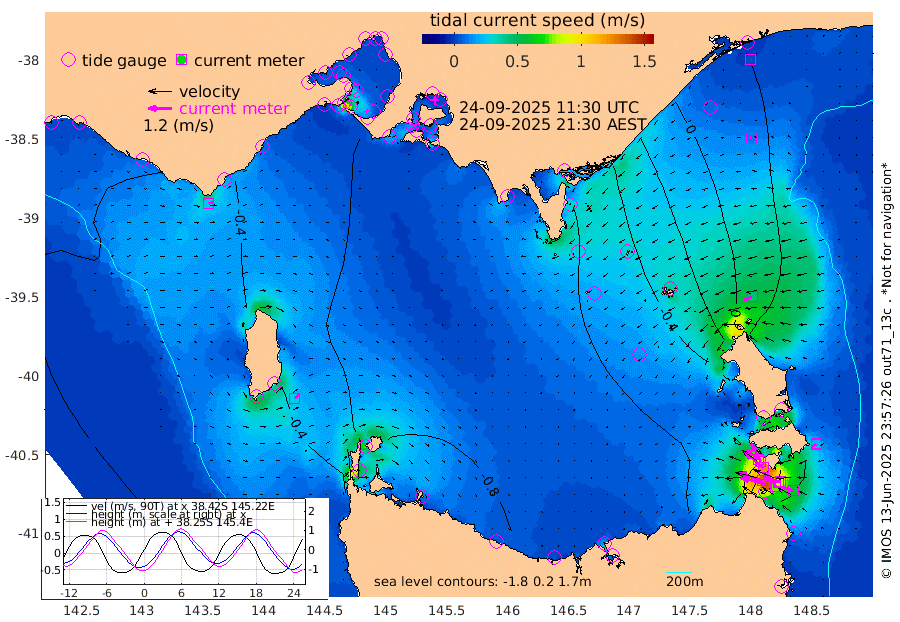 83cm/s -68T +9cm/s rms + 16cm/s 128T. CWTb1 63m 81cm/s -75T +8cm/s rms + 14cm/s 130T. C1A1 56m 135cm/s -75T +8cm/s rms + 12cm/s 12T. C1A3 27m 74cm/s -52T +0cm/s rms + 0cm/s 0T. CW1 32m 124cm/s -50T +11cm/s rms + 9cm/s 121T. CW2A1 44m 77cm/s -38T +7cm/s rms + 12cm/s 156T. CW2A2 44m 102cm/s -27T +7cm/s rms + 4cm/s 115T. CW3 33m 133cm/s -72T +9cm/s rms + 6cm/s 84T. CW4A1 30m 58cm/s -70T +5cm/s rms + 7cm/s 87T. CW4A2 36m 15cm/s -126T +9cm/s rms + 16cm/s 35T. CW6A1 37m 22cm/s -119T +6cm/s rms + 4cm/s 94T. CW6A2 31m 45cm/s -115T +4cm/s rms + 6cm/s 137T. BASS-CS91 47m 11cm/s -59T +11cm/s rms + 3cm/s -58T. BASS-CS91 70m 4cm/s 38T +10cm/s rms + 1cm/s 137T. BASS-CS91 47m 28cm/s 58T +10cm/s rms + 3cm/s 42T. BASS-CS91 53m 24cm/s 74T +8cm/s rms + 2cm/s 81T. BASS-CS91 64m 13cm/s 177T +6cm/s rms + 5cm/s 151T. BASS-UN91 115m 9cm/s 126T +4cm/s rms + 3cm/s 111T. Tas91 UNSW Mooring #1 65m 95m 15cm Lakes Entrance (Outer) 0cm Barracouta Platform -44cm Hogan Island -71cm Port Welshpool Pier -60cm Rabbit Island -60cm East Moncoeur Island -54cm Curtis Island -75cm Waratah Bay -99cm San Remo -98cm Elizabeth Island -113cm Bouchier Channel -110cm Tooradin -95cm Cowes Jetty -96cm Western Port (Stony Point) -111cm Western Port (Sandy Point) -66cm Flinders Jetty -23cm Mornington -24cm Sandringham -22cm Rosebud Jetty -22cm Hovell Pile -27cm South Channel -40cm Point Lonsdale -30cm Queenscliff -23cm West Channel Pile -41cm Barwon Heads -25cm St Leonards -26cm Point Richards (Corio Bay) -26cm Point Richards Channel -26cm Geelong -23cm Werribee -25cm Altona -27cm Wilson Spit -24cm Melbourne (Williamstown) -26cm St Kilda -48cm Lorne -34cm Apollo Bay -29cm Garden Cove -44cm Bass Pyramid -26cm Seal Bay -34cm King Island (Grassy) -68cm Stack Island -68cm Three Hummock Island -82cm Stanley -72cm Burnie -68cm Devonport -68cm Low Head -89cm Bell Bay -51cm Big River Cove -12cm Lady Barron Harbour 33cm Swan Island 33cm Eddystone Point 7cm St Helens -16cm Port Campbell -19cm Warrnambool -19cm Port Fairy