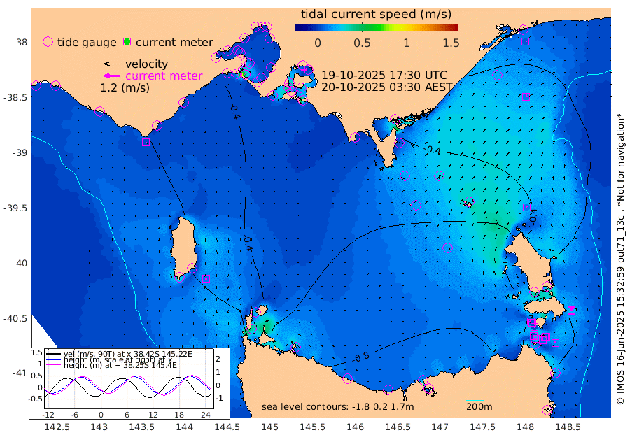 7cm/s 136T +9cm/s rms + 16cm/s 128T. CWTb1 63m 2cm/s 162T +8cm/s rms + 14cm/s 130T. C1A1 56m 22cm/s -82T +8cm/s rms + 12cm/s 12T. C1A3 27m 6cm/s -75T +0cm/s rms + 0cm/s 0T. CW1 32m 3cm/s -132T +11cm/s rms + 9cm/s 121T. CW2A1 44m 7cm/s -64T +7cm/s rms + 12cm/s 156T. CW2A2 44m 3cm/s 177T +7cm/s rms + 4cm/s 115T. CW3 33m 2cm/s -113T +9cm/s rms + 6cm/s 84T. CW4A1 30m 14cm/s -26T +5cm/s rms + 7cm/s 87T. CW4A2 36m 18cm/s 5T +9cm/s rms + 16cm/s 35T. CW6A1 37m 22cm/s 35T +6cm/s rms + 4cm/s 94T. CW6A2 31m 11cm/s 10T +4cm/s rms + 6cm/s 137T. BASS-CS91 47m 12cm/s 49T +11cm/s rms + 3cm/s -58T. BASS-CS91 70m 6cm/s 67T +10cm/s rms + 1cm/s 137T. BASS-CS91 47m 11cm/s -179T +10cm/s rms + 3cm/s 42T. BASS-CS91 53m 2cm/s 168T +8cm/s rms + 2cm/s 81T. BASS-CS91 64m 15cm/s -153T +6cm/s rms + 5cm/s 151T. BASS-UN91 115m 11cm/s 166T +4cm/s rms + 3cm/s 111T. Tas91 UNSW Mooring #1 65m 95m -13cm Lakes Entrance (Outer) -12cm Barracouta Platform -46cm Hogan Island -40cm Port Welshpool Pier -44cm Rabbit Island -49cm East Moncoeur Island -60cm Curtis Island -58cm Waratah Bay -39cm San Remo -31cm Elizabeth Island -32cm Bouchier Channel -23cm Tooradin -35cm Cowes Jetty -40cm Western Port (Stony Point) -25cm Western Port (Sandy Point) -43cm Flinders Jetty 7cm Mornington 6cm Sandringham 6cm Rosebud Jetty 5cm Hovell Pile -8cm South Channel -25cm Point Lonsdale -13cm Queenscliff 5cm West Channel Pile -35cm Barwon Heads 6cm St Leonards 6cm Point Richards (Corio Bay) 6cm Point Richards Channel 8cm Geelong 5cm Werribee 6cm Altona 7cm Wilson Spit 6cm Melbourne (Williamstown) 7cm St Kilda -34cm Lorne -24cm Apollo Bay -54cm Garden Cove -67cm Bass Pyramid -6cm Seal Bay -16cm King Island (Grassy) -44cm Stack Island -44cm Three Hummock Island -81cm Stanley -86cm Burnie -87cm Devonport -85cm Low Head -77cm Bell Bay -73cm Big River Cove -44cm Lady Barron Harbour -39cm Swan Island -14cm Eddystone Point -27cm St Helens -6cm Port Campbell 0cm Warrnambool -1cm Port Fairy