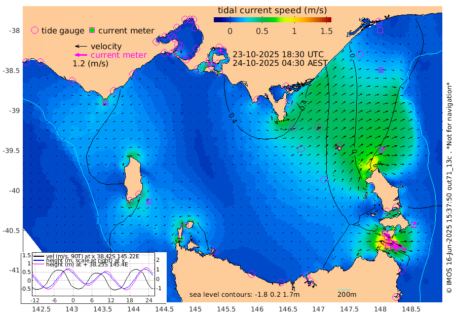84cm/s 114T +9cm/s rms + 16cm/s 128T. CWTb1 63m 73cm/s 107T +8cm/s rms + 14cm/s 130T. C1A1 56m 105cm/s 104T +8cm/s rms + 12cm/s 12T. C1A3 27m 64cm/s 126T +0cm/s rms + 0cm/s 0T. CW1 32m 106cm/s 130T +11cm/s rms + 9cm/s 121T. CW2A1 44m 65cm/s 144T +7cm/s rms + 12cm/s 156T. CW2A2 44m 83cm/s 151T +7cm/s rms + 4cm/s 115T. CW3 33m 112cm/s 109T +9cm/s rms + 6cm/s 84T. CW4A1 30m 48cm/s 101T +5cm/s rms + 7cm/s 87T. CW4A2 36m 23cm/s 34T +9cm/s rms + 16cm/s 35T. CW6A1 37m 27cm/s 49T +6cm/s rms + 4cm/s 94T. CW6A2 31m 48cm/s 59T +4cm/s rms + 6cm/s 137T. BASS-CS91 47m 14cm/s 97T +11cm/s rms + 3cm/s -58T. BASS-CS91 70m 2cm/s -160T +10cm/s rms + 1cm/s 137T. BASS-CS91 47m 21cm/s -124T +10cm/s rms + 3cm/s 42T. BASS-CS91 53m 21cm/s -110T +8cm/s rms + 2cm/s 81T. BASS-CS91 64m 1cm/s 77T +6cm/s rms + 5cm/s 151T. BASS-UN91 115m 3cm/s -86T +4cm/s rms + 3cm/s 111T. Tas91 UNSW Mooring #1 65m 95m -7cm Lakes Entrance (Outer) -1cm Barracouta Platform 20cm Hogan Island 57cm Port Welshpool Pier 39cm Rabbit Island 30cm East Moncoeur Island 19cm Curtis Island 32cm Waratah Bay 65cm San Remo 72cm Elizabeth Island 93cm Bouchier Channel 97cm Tooradin 64cm Cowes Jetty 66cm Western Port (Stony Point) 91cm Western Port (Sandy Point) 31cm Flinders Jetty 24cm Mornington 25cm Sandringham 22cm Rosebud Jetty 23cm Hovell Pile 20cm South Channel 20cm Point Lonsdale 18cm Queenscliff 24cm West Channel Pile 16cm Barwon Heads 24cm St Leonards 28cm Point Richards (Corio Bay) 27cm Point Richards Channel 30cm Geelong 26cm Werribee 26cm Altona 28cm Wilson Spit 26cm Melbourne (Williamstown) 28cm St Kilda 20cm Lorne 18cm Apollo Bay 3cm Garden Cove 7cm Bass Pyramid 25cm Seal Bay 22cm King Island (Grassy) 46cm Stack Island 33cm Three Hummock Island 25cm Stanley 14cm Burnie 11cm Devonport 13cm Low Head 37cm Bell Bay 10cm Big River Cove -2cm Lady Barron Harbour -41cm Swan Island -29cm Eddystone Point -21cm St Helens 16cm Port Campbell 20cm Warrnambool 20cm Port Fairy