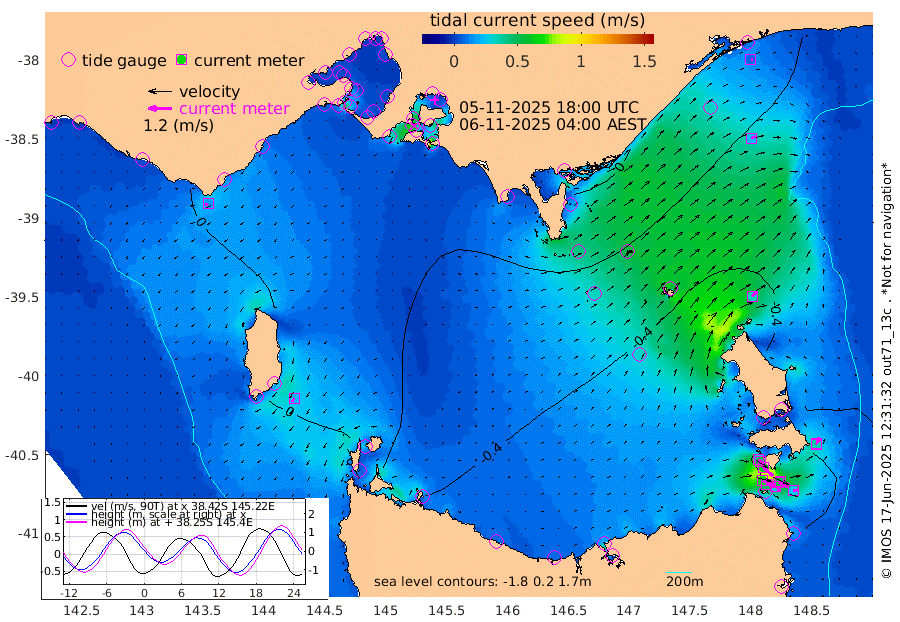 56cm/s 115T +9cm/s rms + 16cm/s 128T. CWTb1 63m 46cm/s 108T +8cm/s rms + 14cm/s 130T. C1A1 56m 48cm/s 106T +8cm/s rms + 12cm/s 12T. C1A3 27m 32cm/s 129T +0cm/s rms + 0cm/s 0T. CW1 32m 61cm/s 131T +11cm/s rms + 9cm/s 121T. CW2A1 44m 31cm/s 140T +7cm/s rms + 12cm/s 156T. CW2A2 44m 50cm/s 151T +7cm/s rms + 4cm/s 115T. CW3 33m 66cm/s 110T +9cm/s rms + 6cm/s 84T. CW4A1 30m 25cm/s 79T +5cm/s rms + 7cm/s 87T. CW4A2 36m 35cm/s 20T +9cm/s rms + 16cm/s 35T. CW6A1 37m 27cm/s 41T +6cm/s rms + 4cm/s 94T. CW6A2 31m 33cm/s 44T +4cm/s rms + 6cm/s 137T. BASS-CS91 47m 22cm/s 72T +11cm/s rms + 3cm/s -58T. BASS-CS91 70m 8cm/s 78T +10cm/s rms + 1cm/s 137T. BASS-CS91 47m 21cm/s -140T +10cm/s rms + 3cm/s 42T. BASS-CS91 53m 17cm/s -115T +8cm/s rms + 2cm/s 81T. BASS-CS91 64m 7cm/s -121T +6cm/s rms + 5cm/s 151T. BASS-UN91 115m 7cm/s -151T +4cm/s rms + 3cm/s 111T. Tas91 UNSW Mooring #1 65m 95m -9cm Lakes Entrance (Outer) -6cm Barracouta Platform -32cm Hogan Island 7cm Port Welshpool Pier -14cm Rabbit Island -31cm East Moncoeur Island -42cm Curtis Island -30cm Waratah Bay 3cm San Remo 13cm Elizabeth Island 27cm Bouchier Channel 37cm Tooradin 1cm Cowes Jetty 3cm Western Port (Stony Point) 33cm Western Port (Sandy Point) -24cm Flinders Jetty 24cm Mornington 26cm Sandringham 23cm Rosebud Jetty 23cm Hovell Pile 8cm South Channel -9cm Point Lonsdale 3cm Queenscliff 23cm West Channel Pile -22cm Barwon Heads 23cm St Leonards 27cm Point Richards (Corio Bay) 25cm Point Richards Channel 30cm Geelong 24cm Werribee 26cm Altona 27cm Wilson Spit 26cm Melbourne (Williamstown) 27cm St Kilda -18cm Lorne -9cm Apollo Bay -47cm Garden Cove -52cm Bass Pyramid 8cm Seal Bay 0cm King Island (Grassy) -15cm Stack Island -19cm Three Hummock Island -54cm Stanley -69cm Burnie -72cm Devonport -68cm Low Head -42cm Bell Bay -62cm Big River Cove -36cm Lady Barron Harbour -41cm Swan Island -19cm Eddystone Point -28cm St Helens 14cm Port Campbell 17cm Warrnambool 16cm Port Fairy