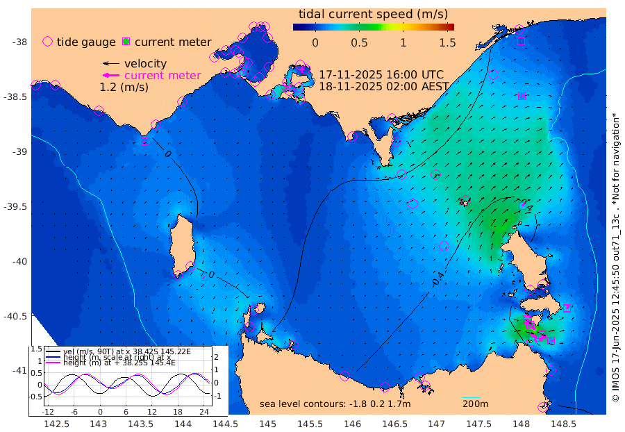 40cm/s 115T +9cm/s rms + 16cm/s 128T. CWTb1 63m 34cm/s 108T +8cm/s rms + 14cm/s 130T. C1A1 56m 35cm/s 108T +8cm/s rms + 12cm/s 12T. C1A3 27m 25cm/s 131T +0cm/s rms + 0cm/s 0T. CW1 32m 47cm/s 132T +11cm/s rms + 9cm/s 121T. CW2A1 44m 25cm/s 146T +7cm/s rms + 12cm/s 156T. CW2A2 44m 38cm/s 152T +7cm/s rms + 4cm/s 115T. CW3 33m 51cm/s 108T +9cm/s rms + 6cm/s 84T. CW4A1 30m 18cm/s 78T +5cm/s rms + 7cm/s 87T. CW4A2 36m 19cm/s 19T +9cm/s rms + 16cm/s 35T. CW6A1 37m 26cm/s 45T +6cm/s rms + 4cm/s 94T. CW6A2 31m 25cm/s 44T +4cm/s rms + 6cm/s 137T. BASS-CS91 47m 14cm/s 68T +11cm/s rms + 3cm/s -58T. BASS-CS91 70m 5cm/s 80T +10cm/s rms + 1cm/s 137T. BASS-CS91 47m 21cm/s -143T +10cm/s rms + 3cm/s 42T. BASS-CS91 53m 11cm/s -121T +8cm/s rms + 2cm/s 81T. BASS-CS91 64m 7cm/s -144T +6cm/s rms + 5cm/s 151T. BASS-UN91 115m 8cm/s -172T +4cm/s rms + 3cm/s 111T. Tas91 UNSW Mooring #1 65m 95m -15cm Lakes Entrance (Outer) -11cm Barracouta Platform -25cm Hogan Island -8cm Port Welshpool Pier -21cm Rabbit Island -23cm East Moncoeur Island -37cm Curtis Island -27cm Waratah Bay -2cm San Remo 4cm Elizabeth Island 10cm Bouchier Channel 16cm Tooradin -1cm Cowes Jetty -4cm Western Port (Stony Point) 15cm Western Port (Sandy Point) -16cm Flinders Jetty 13cm Mornington 12cm Sandringham 12cm Rosebud Jetty 12cm Hovell Pile 3cm South Channel -6cm Point Lonsdale -1cm Queenscliff 12cm West Channel Pile -14cm Barwon Heads 12cm St Leonards 14cm Point Richards (Corio Bay) 13cm Point Richards Channel 16cm Geelong 12cm Werribee 13cm Altona 14cm Wilson Spit 13cm Melbourne (Williamstown) 14cm St Kilda -9cm Lorne -2cm Apollo Bay -38cm Garden Cove -48cm Bass Pyramid 15cm Seal Bay 8cm King Island (Grassy) -5cm Stack Island -10cm Three Hummock Island -44cm Stanley -52cm Burnie -55cm Devonport -53cm Low Head -37cm Bell Bay -47cm Big River Cove -35cm Lady Barron Harbour -48cm Swan Island -24cm Eddystone Point -26cm St Helens 9cm Port Campbell 19cm Warrnambool 19cm Port Fairy